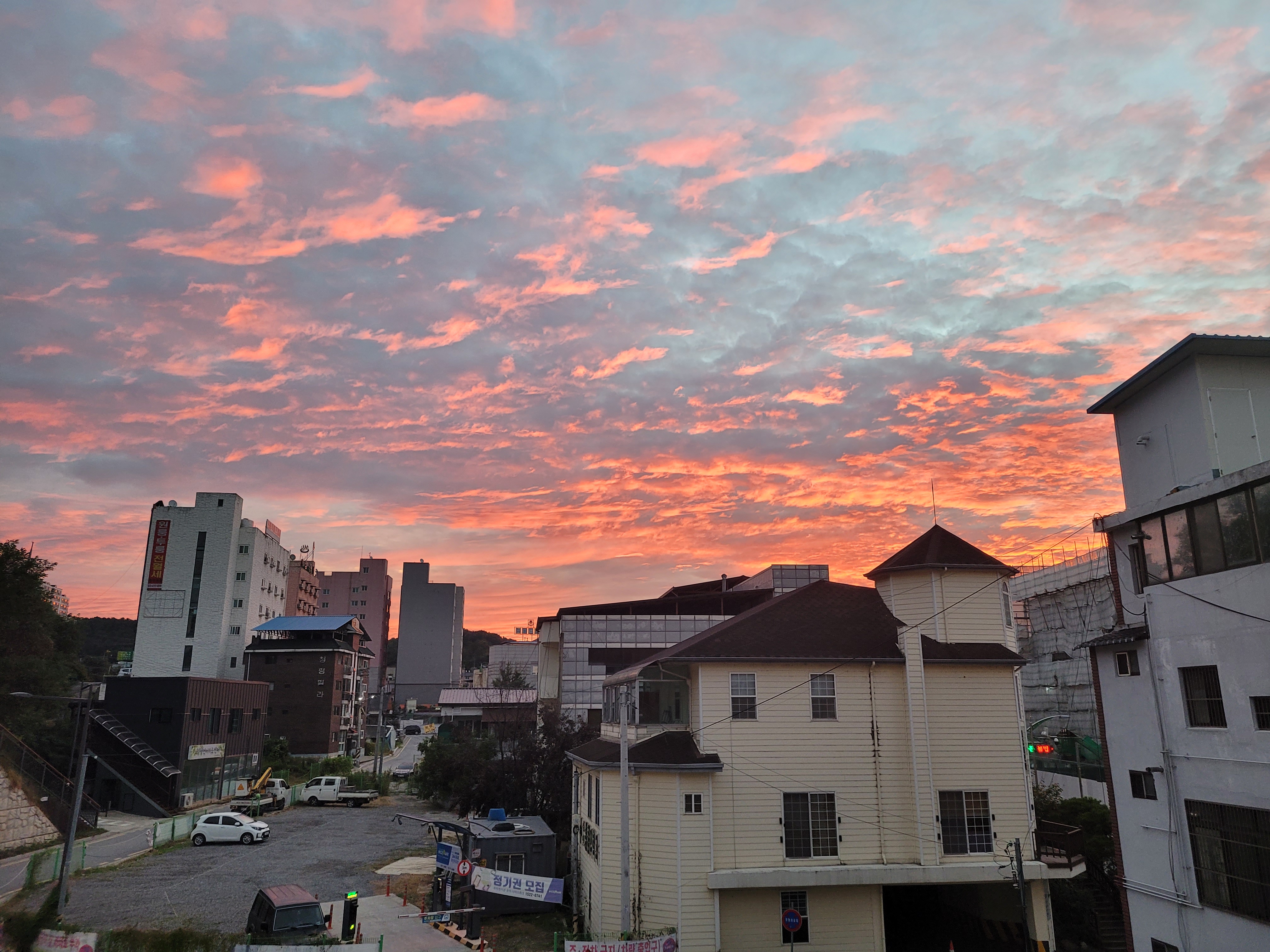 붉은하늘dodoim (87)in zzan • 5 years ago 새벽에 창문을 여니 하늘은 붉게 물들어 있고 찬공기가 시원하게 불어옵니다 동쪽하늘 새벽노을이 해 뜨기전 빨간노을이 멋지게 펼쳐저 있어요 한폭의 아름다운 그림 입니다. #zzan #life #steemit #atomy