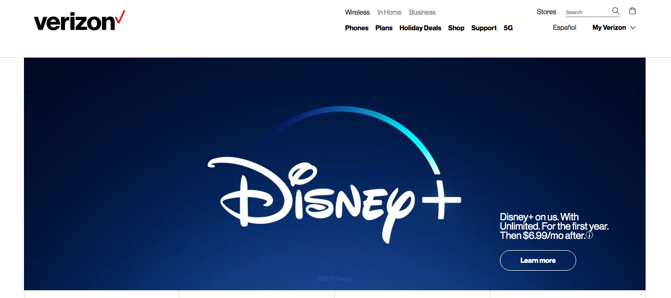 Verizon Wireless 회사가 고객들을 대상으로 1년동안 무료로 디즈니플러스를 제공하고 있습니다.
