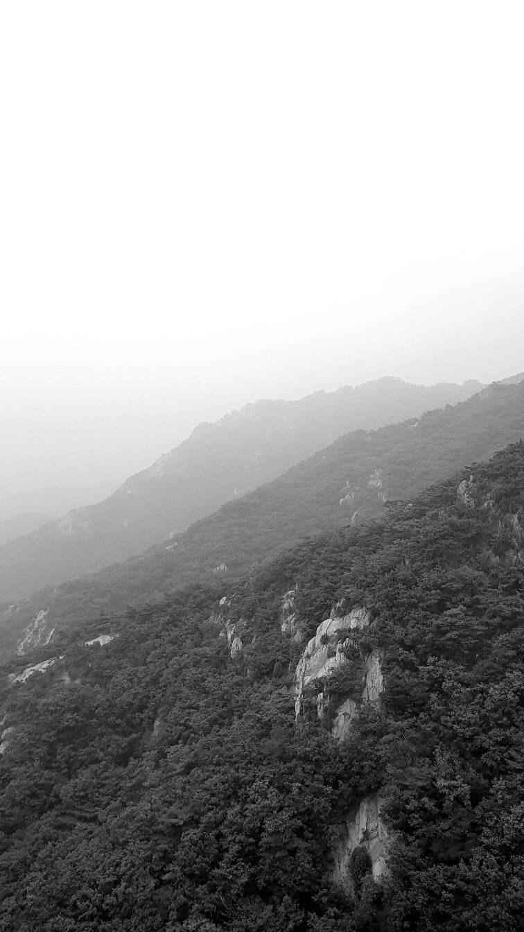 비가 촉촉하게 내립니다. 먼 산은 구름에 싸여 있네요.