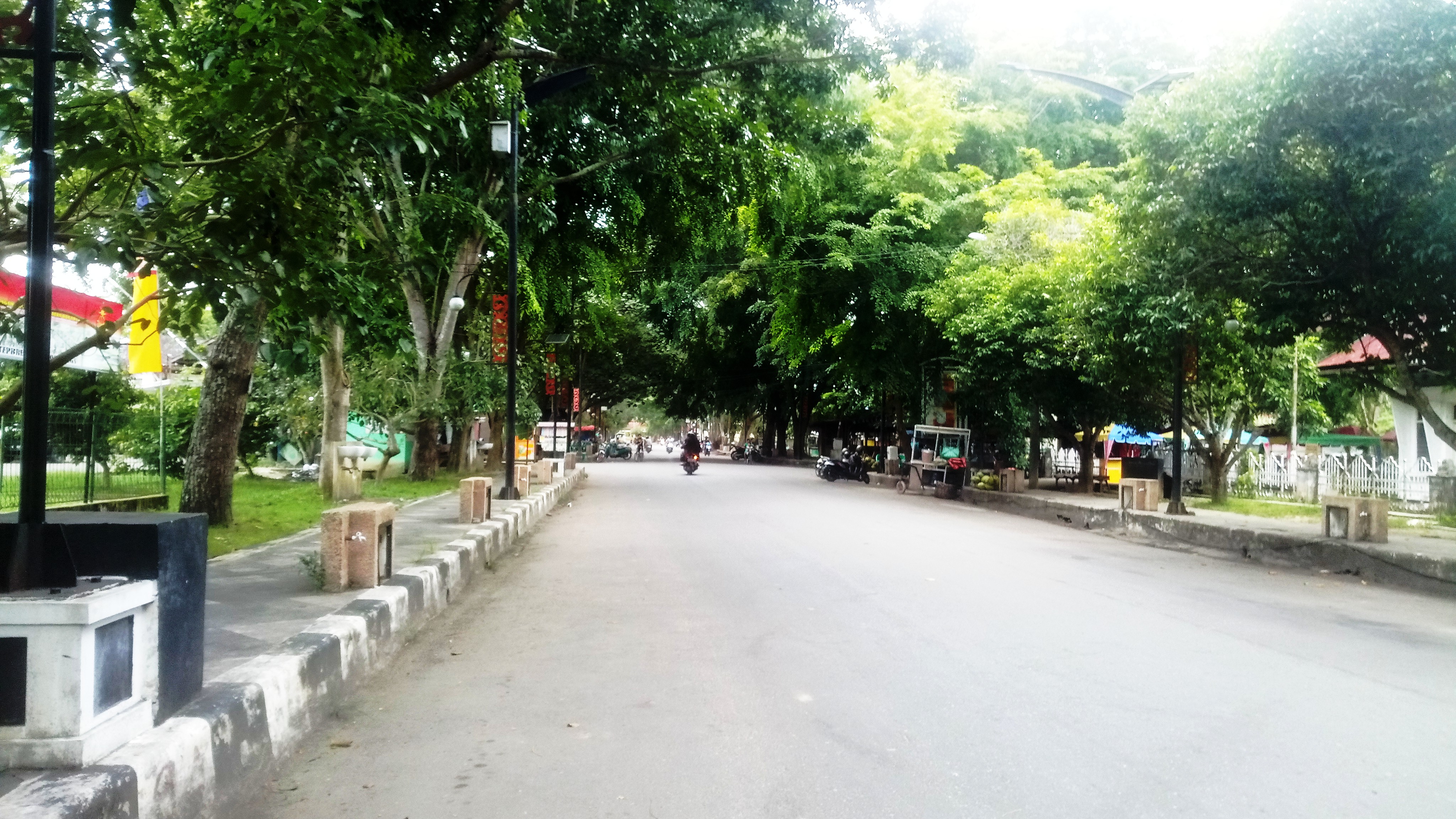 Jalanan di sebelah jalan utama, tampak sepi, anak sekolah pada libur kali? orang-orang kantoran masih sibuk-sibuknya dikantor, dirumah atau di warung kopi. Peduli setan mereka sedang dimana.