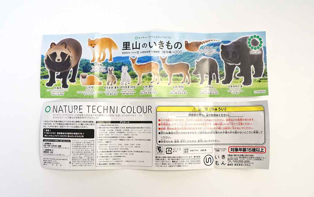 피규어는 총 10종으로 일본 사토야마(里山)의 동물들을 피규어화 했습니다.