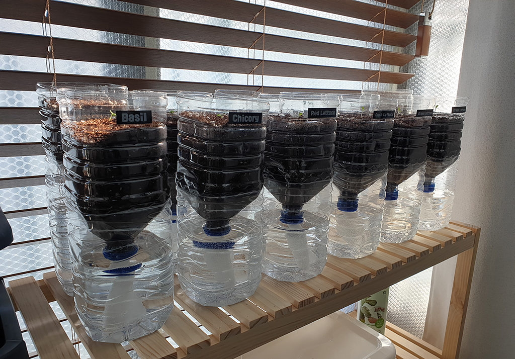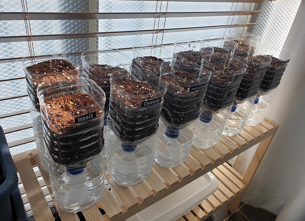 일단 페트병 화분은 12개로 청상추 6개, 적상추2개, 치커리2, 바질2개 입니다. 헷갈리지 않게 레이블도 붙여줬어요.ㅋㅋ