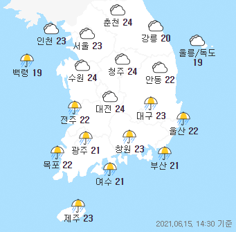 [Asia-Weather] 6월 15일 현재 아시아 주요도시 날씨 + 현재 전국 날씨