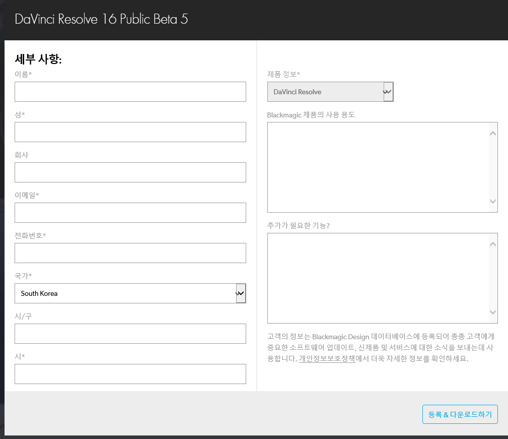 이름과이메일등등 필수확인만 하시면 무료로 사용가능하답니다.