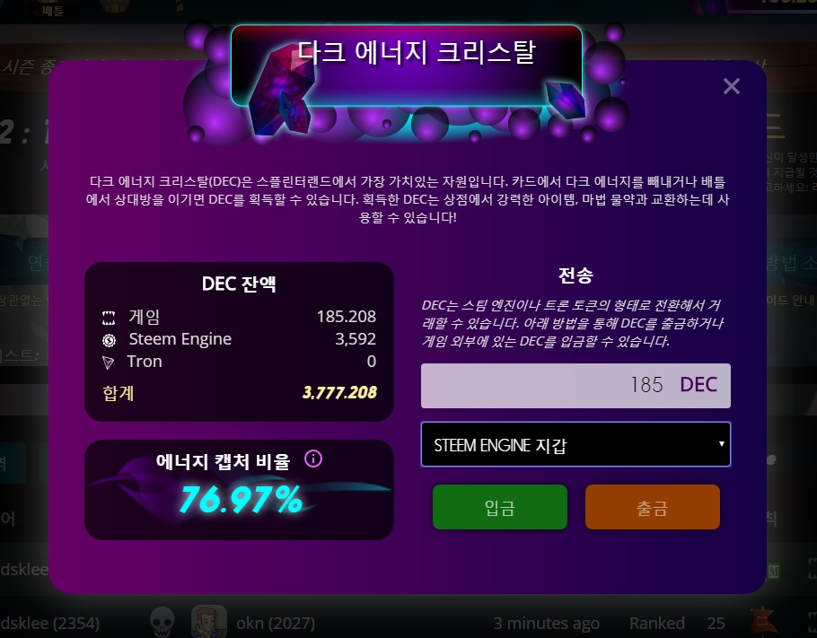 스팀엔진에서 들어온토큰들 전부 지갑으로~~