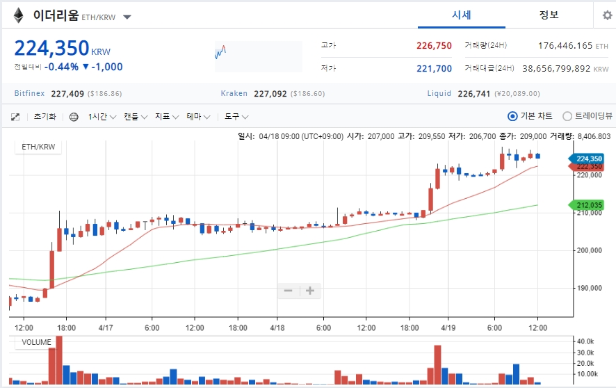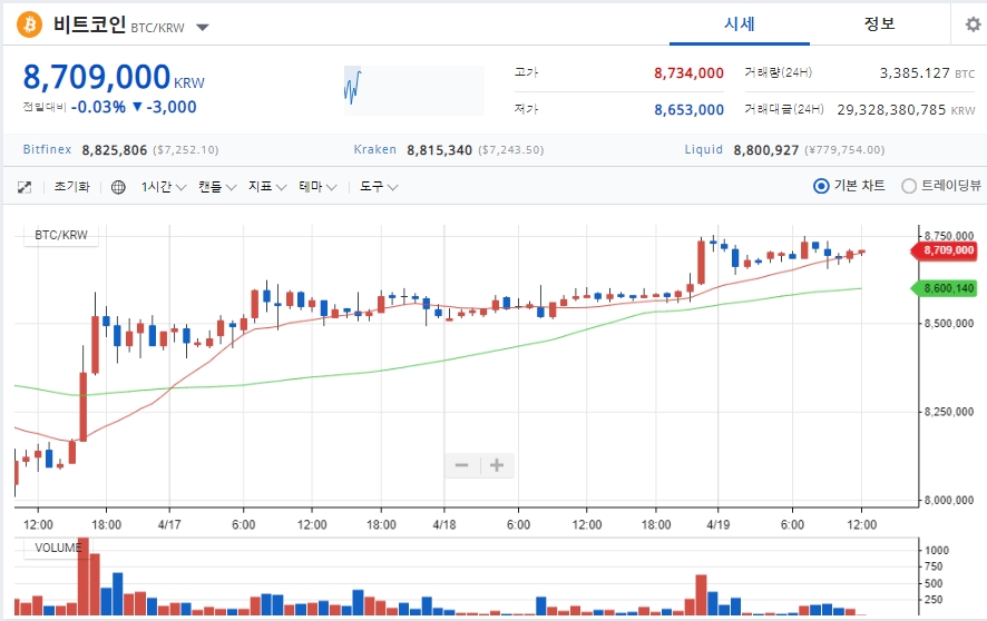 [ Crypto ] 4/19 크립토 시황leeyh2 (67)in #zzan • 6 years ago 전체적으로 상승세입니다. 최근 계속 말씀드린 것처럼 ETH가 시장의 상승세를 이끌고 있습니다. 테조스와 체인링크도 상승폭이 큽니다. BTC의 반감기가 다가오면서 BTC도 서서히 상승중입니다. 반감기까지는 9k는 무난하게 넘어설거라 보여집니다. ETH가 비교적 BTC보다 상승폭이 큽니다. 거래대금도 ETH가 BTC를 앞서고 있습니다. 아이러니하게 BTC최고 수혜자는 ETH가 될수도 있다 보여집니다. #kr #dblog #sct