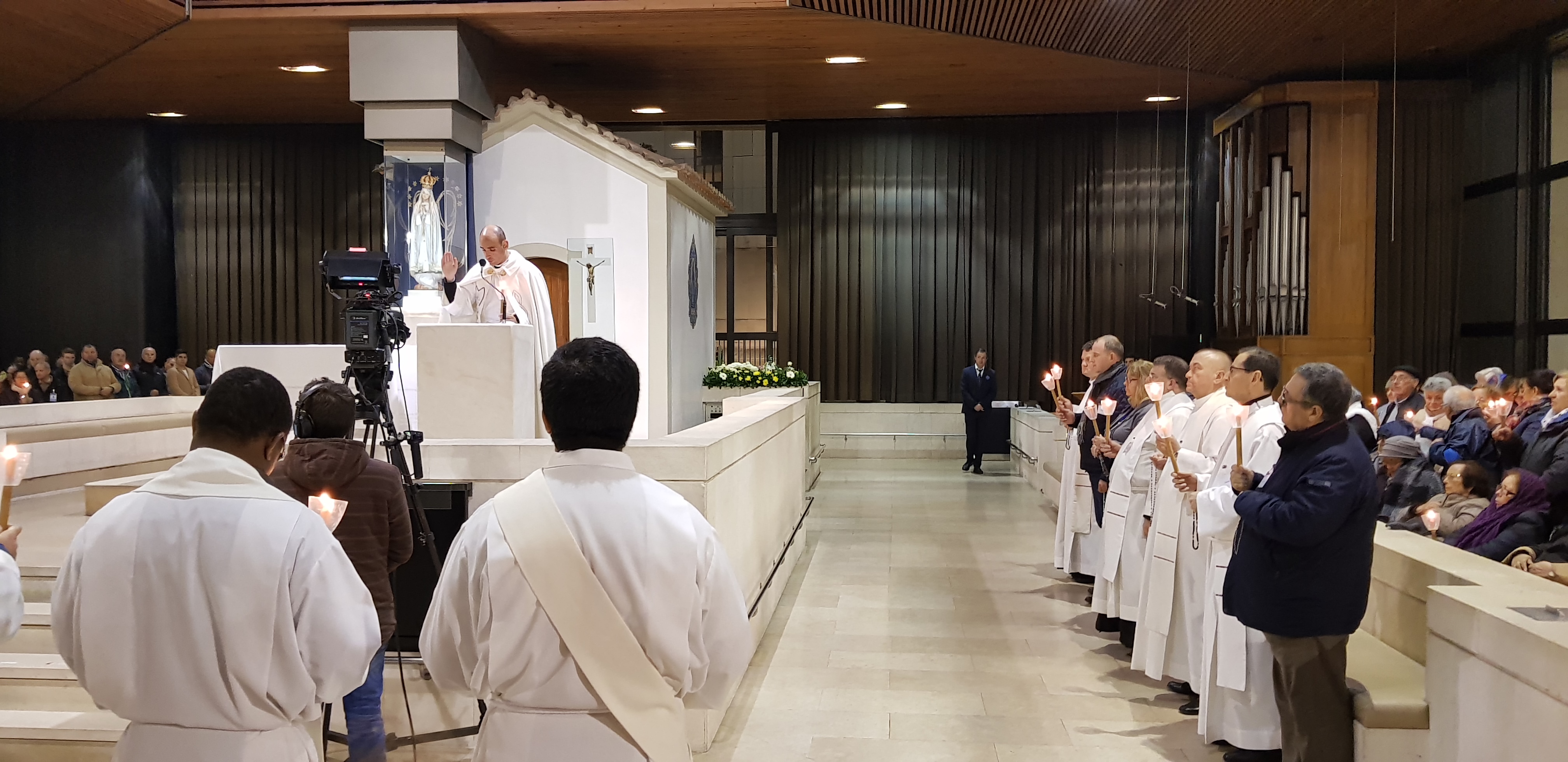 저녁 9시 밤 미사를 드린 모든 신도들이 촛불을 밝혔다. 맨 앞에는 십자가, 그 뒤에는 성모상이 따라 갔으며, 모든 신도들도 십자가와 성모상의 뒤를 따르며 성모송을 불렀다.