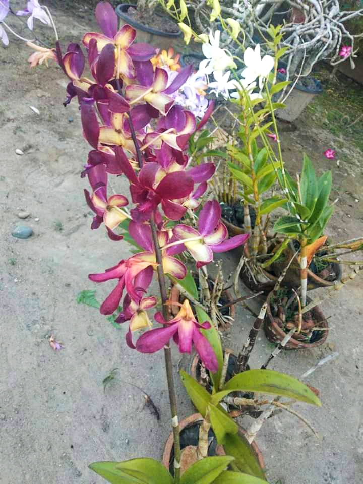 Ada berbagai macam jenis bunga yang ada di rumahnya. Dari berbagai jenis anggrek, yang warnanya beraneka ragam, juga ada berbagai macam bunga kertas warna-warni. Disamping itu juga ada tanaman-tanaman hijau lainnya, yang menghiasi pekarangan rumah nya.