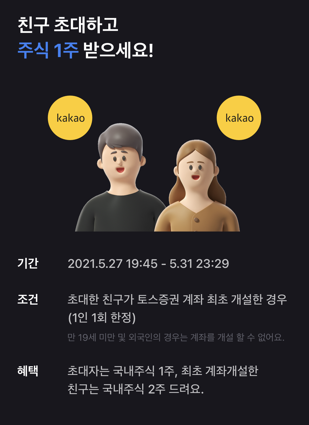 추천한 친구가 생애최초 토스 중권 계좌를 개설하면 2주