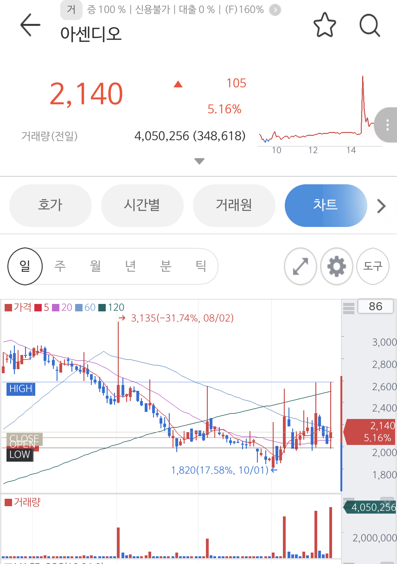2021.10.26 현재 아센디오 주가