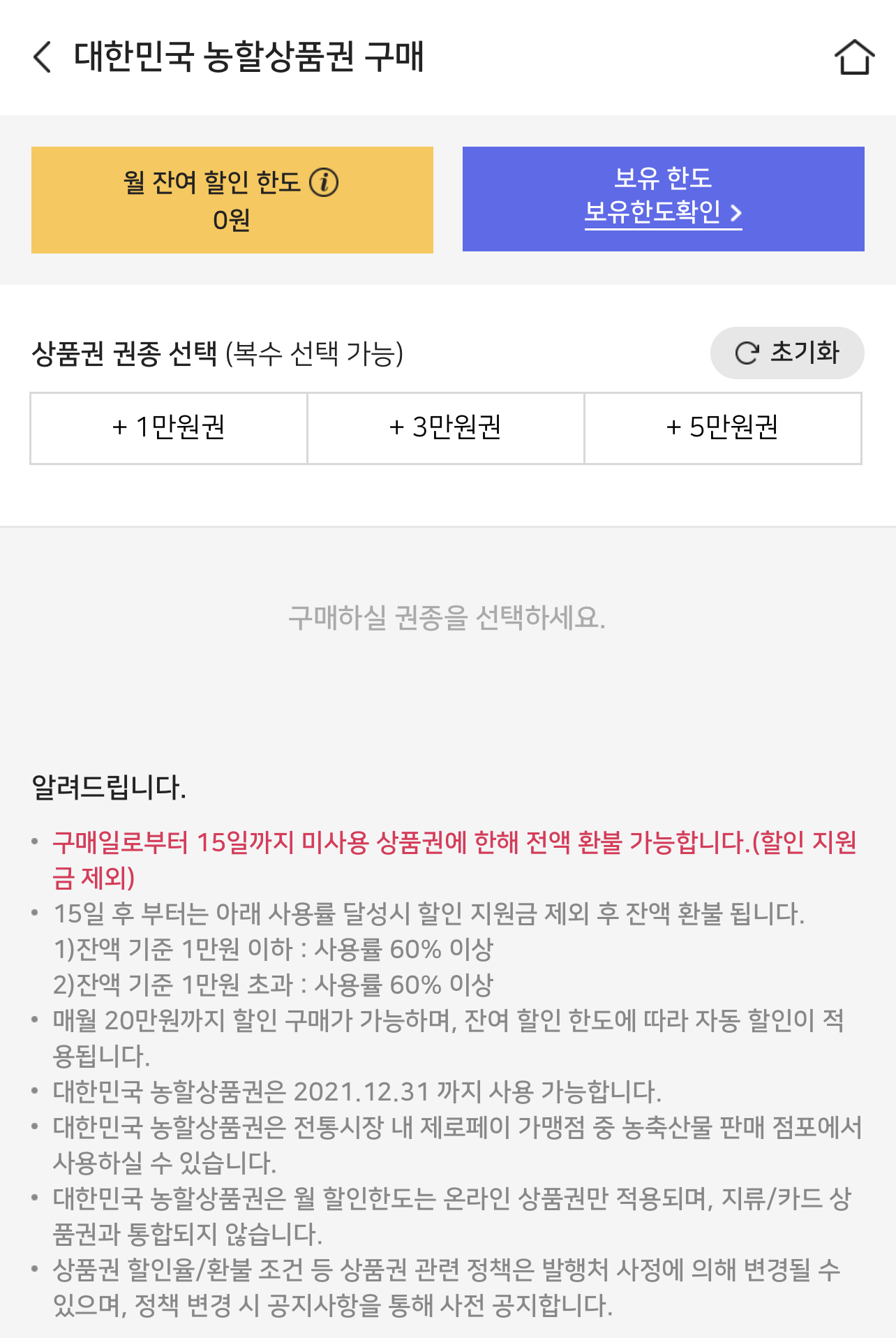 제로페이앱 접속 > 상품권 구매 > 대한민국 농활상품권 선택 > 결재 (현금 선결재)
