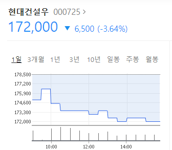 이건 현대건설주를 받는것이 아닌 현대건설우선주를 받는것으로 아는데, 내가 현재 계산을 잘못한건지 50000원대 이하면 사려고 했는데... 초반 28000원 정도에 나왔다가, 어제 종가 3400원대로 마감됐다.