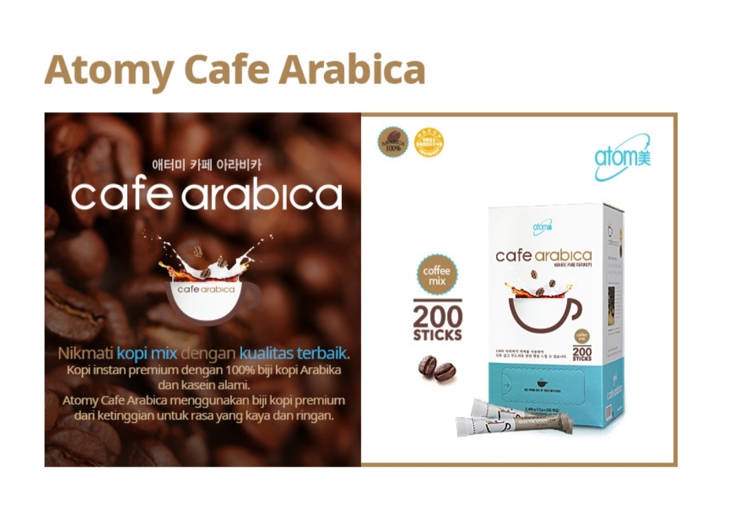 I wish all of you well and always happy. Today I would like to introduce one of the best products marketed at Atomy, namely cafe arabica. For those of you who like coffee drinks, of course you are familiar with the name cafe arabica.
