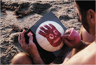 배구공에 사람 얼굴을 그리고,
