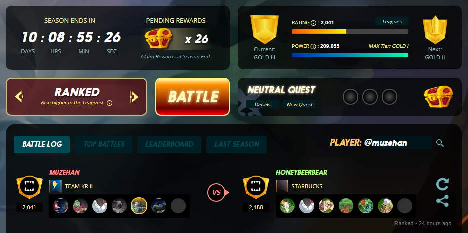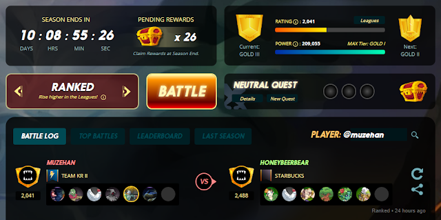 아직도 골드3 리그에서 헤메고 있는데 오늘은 대전 운이 좋았는데 순조롭게 골드2 리그까지 올라 갔습니다.
