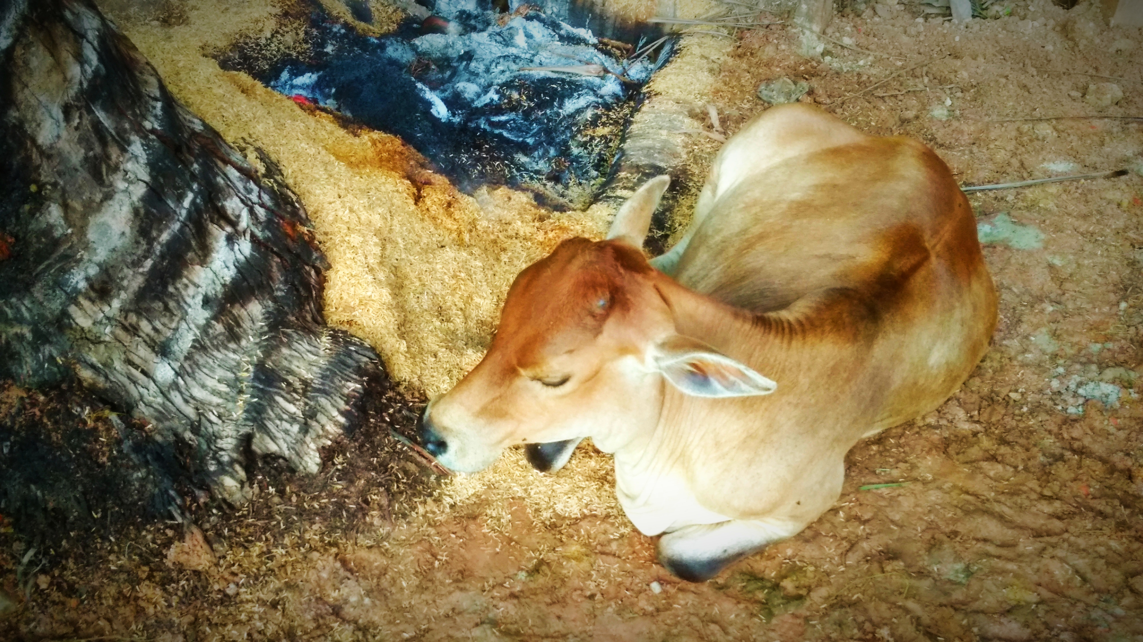 Ketika saya mengambil gambar, lembu belum dilepaskan didalam kandangnya. Lembu lagi menikmati tidurnya disamping api unggun. Lembu tidak menghiraukan kedatangan saya. Saya mencoba mengambil beberapa gambar.