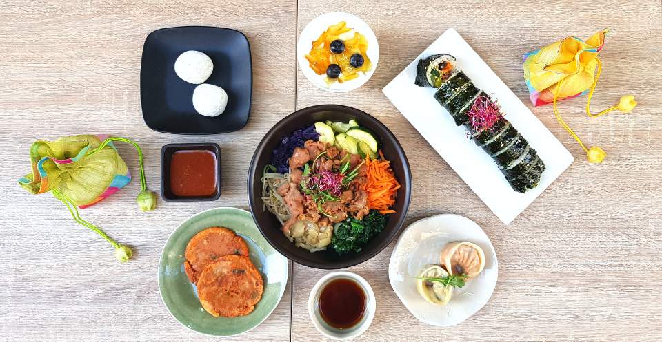 제육 비빔밥, 소고기 김밥, 김치전, 삶은 야채 & 김치 만두, 후식으로 찹쌀떡, 유자 꿀이 들어간 화이트 치즈를 주로 촬영했습니다.
