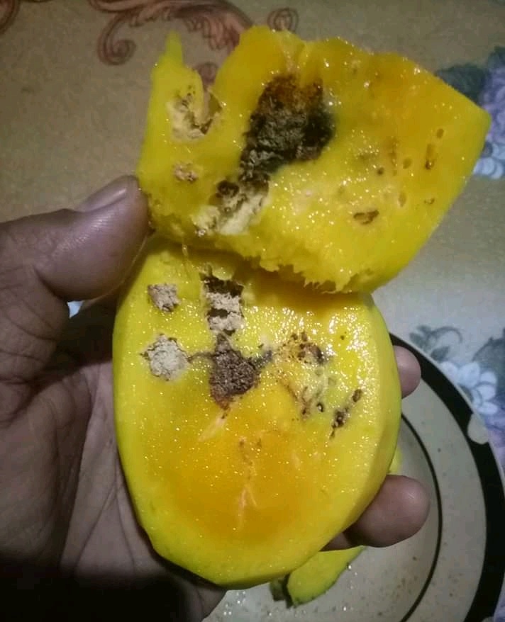 Contohnya bisa kita lihat dari buah mangga yang saya kupas. Sebelum saya kupas mangga ini terlihat cantik dari luar. Tidak ada masalah dengan kulitnya, tapi ketika dibuka didalamnya telah ada penghuninya yang mustahil kita makan.