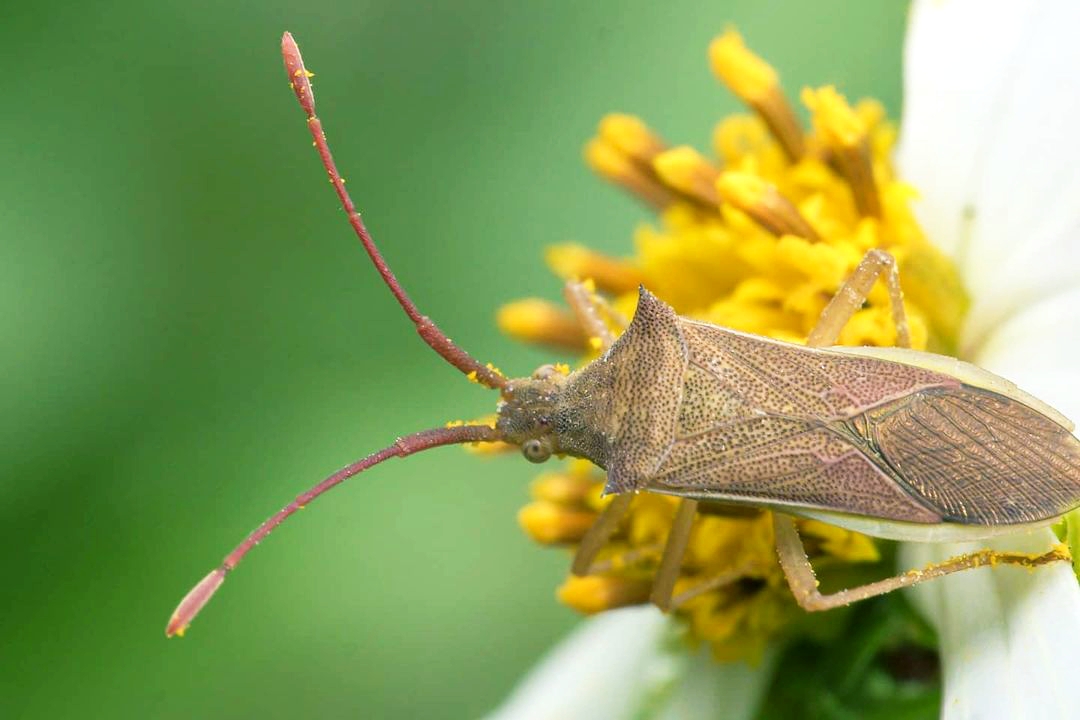 We often encounter this type of pest on rice plants and this time I found it on a slightly different flower but still using the plant.