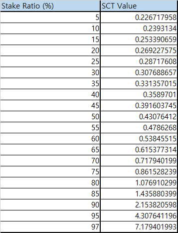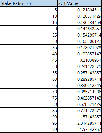 그래서 하루에 실제로 저자에게 가서 소각되는 양은 2666개 정도. 이제 저자 중 얼마나 스테이킹을 하느냐에 대한 부분이 나온다. 만약 0 개를 스테이킹한다고 하면 5천개에 달하는 SCT 물량이 시장에 흘러나오게 되며, 이건 그냥 대충봐도 현재 시장 가격으로 지탱이 "불가능" 하다.