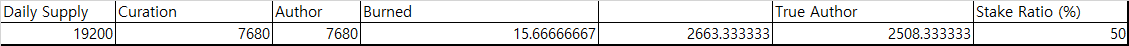 이제 킬링 파트다. 하루에 생산되는 SCT 양은 19200개. 그 중 큐레이션은 7680개, 저자가 7680개. 큐레이션 보상은 대부분 스테이킹을 하시니 (시장에 안던진다) 빼고, 순환 되는 물량은 7680개 이다. 실제로 저자의 지갑으로 들어간 코인과, 큐레이션으로 들어간 코인의 홀딩력은 당연히 비교가 안된다.