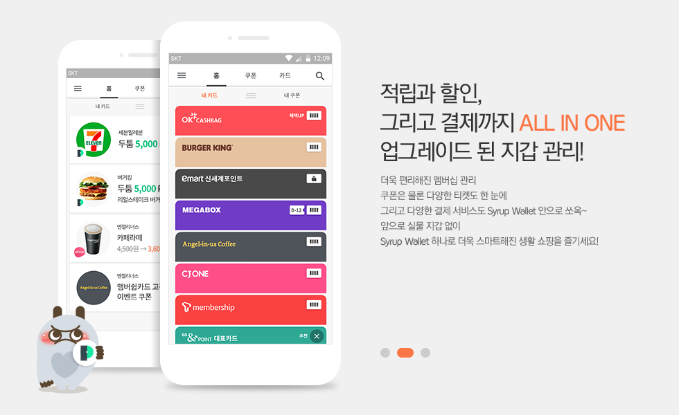 디자인은 맘에 안든다 ㅋㅋㅋㅋㅋㅋㅋ 위에 기스 나면서 내구성은 괜찮아 보이지만,,, 좀만 지나면 안이뻐질듯 하다. 뭐 이런 것들에 이제는 당연히 붙어오는 것들, 앱 연동 결제, 포인트 제도 등 ...