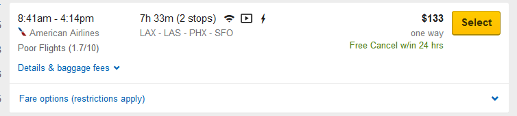 위에 비행기표 캡쳐, 엘에이에서 샌프란 가는데 2스탑 7시간짜리를 고르면 어떡해요 ㅋㅋ
