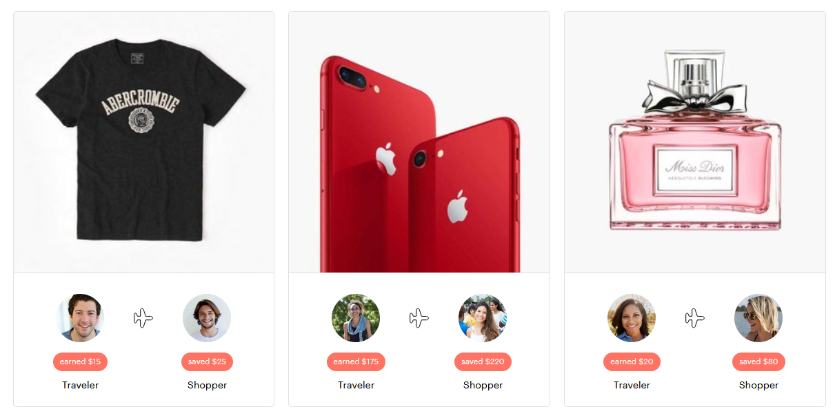 사이트에 이런식으로 여행자는 돈을 벌고, 쇼퍼는 돈을 아낀다. 특정 물건은 해외에서 구매했을 때 더 싸니깐~ 아이디어 진짜 좋다....
