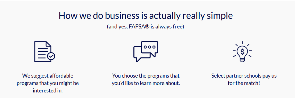 오호, 신기하게 학교에서 돈을 받는다. 학자금 별로 학생에게 학교를 추천하여, 만약 학생이 해당 학교를 위 사이트를 이용하여 들어가면 수익이 되는 구조다. 학교 입장에서도 광고 효과를 주니, 서로 윈윈. 이거 맘에 든다.