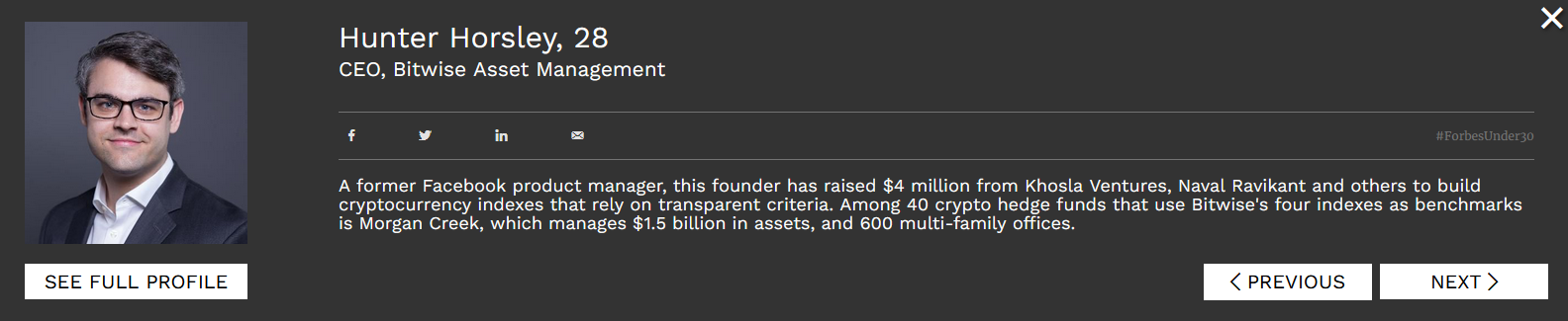 오호 암호화폐 인덱스를 만들었다고 한다. 그리고 인덱스를 구성하는 기준도 투명하게 밝히고. 40개의 크립토 헷지 펀드들이 Bitwise 의 인덱스를 사용하고, 600개의 패밀리 오피스 들도 사용한다고 한다. 융퉁 자금은 음.. 1.5 b 인데 다른 전통적인 헷지 펀드에 비하면 아직 귀여운 숫자긴 하다.