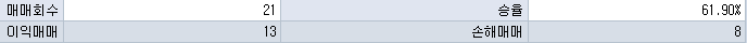 한 달 성적인데 낫배드 한 듯. 승률이 중요한건 아니지만 ㅋㅋㅋ 이번 달도 파이팅 하고~ (카드값이 중순에 나가서 한 이때쯤 정산한다 ㅋㅋㅋㅋ) 손익비가 높은 매매가 아니라... 승률은 70% 정도 나와야.. 쿨럭쿨럭