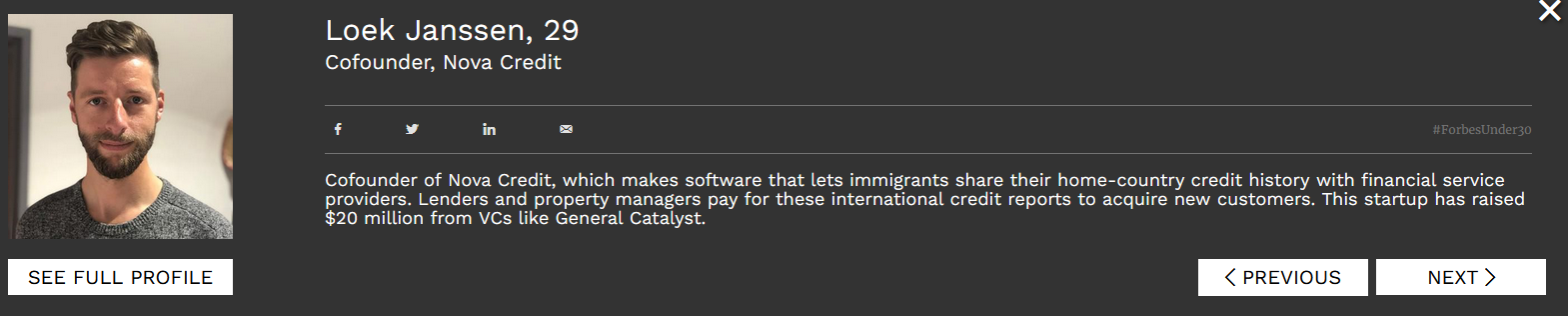 오호 신용도 공유 서비스. 이민자들이 본국에서 가지고 있던 신용도를 옮겨주는 고러한 서비스다. 그리고 그걸 카드사랑 뭐 함작을 하여, 신규 고객 유치 쪽으로도 연결 시키는 것 같다.