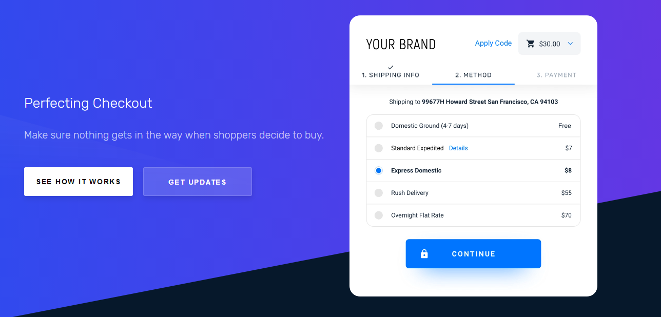요런식으로 주소, 배송 방법, 지불 방법만 입력하면 끝. Amazon like 이라고 썼는데, 진짜 결제가 쉬우면 아무생각없이 사게 되는 듯 하다.