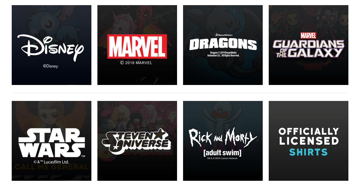 오마이갓. 마블과 디즈니의 케릭터를 가져다 옷/인형에 프린트하여 판매하는 업체다.