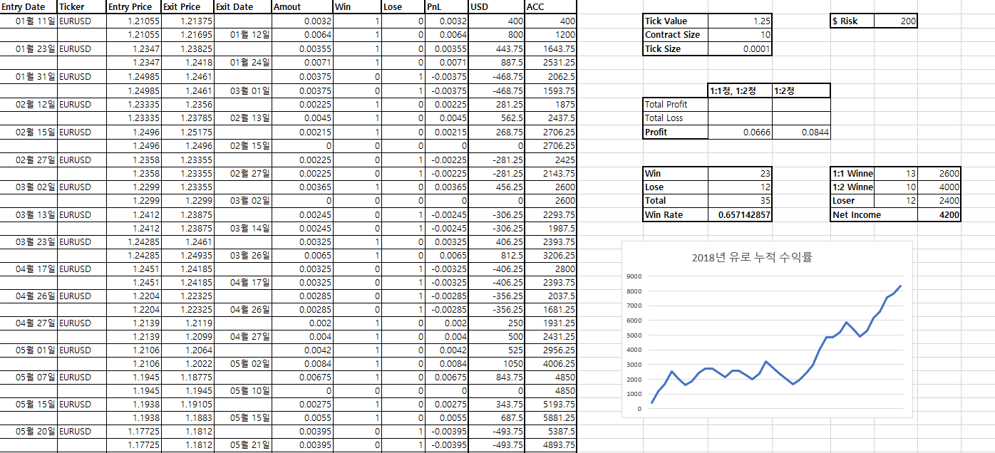 그래서 최근 백테스팅은 그냥 이런식으로 표를 만든다. 승/패/합 ㅋㅋㅋㅋㅋㅋㅋ 그리고 합을 합한 틱수를 넣는다.