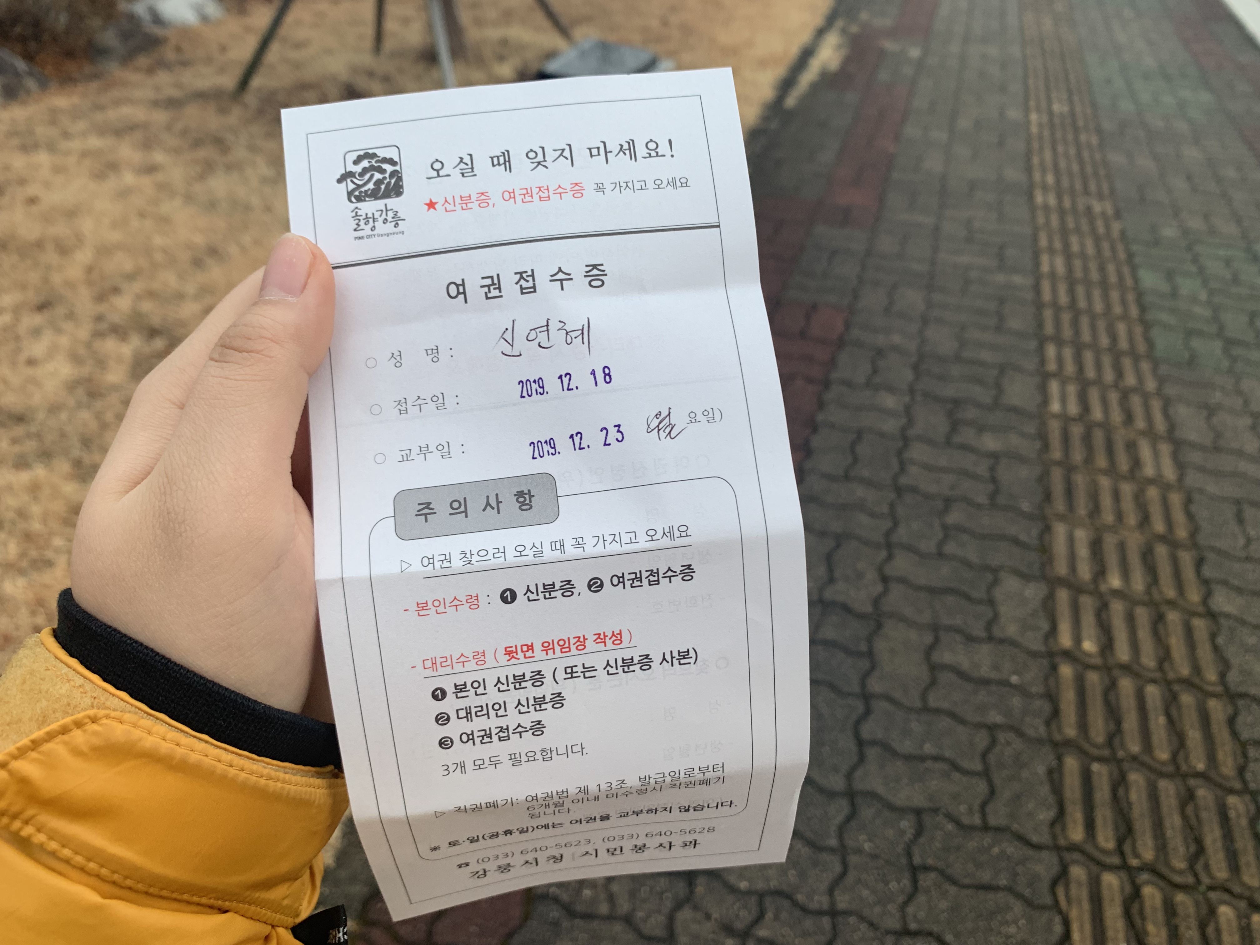 여권사진을 찍은 후 시청으로 바로 갔다.