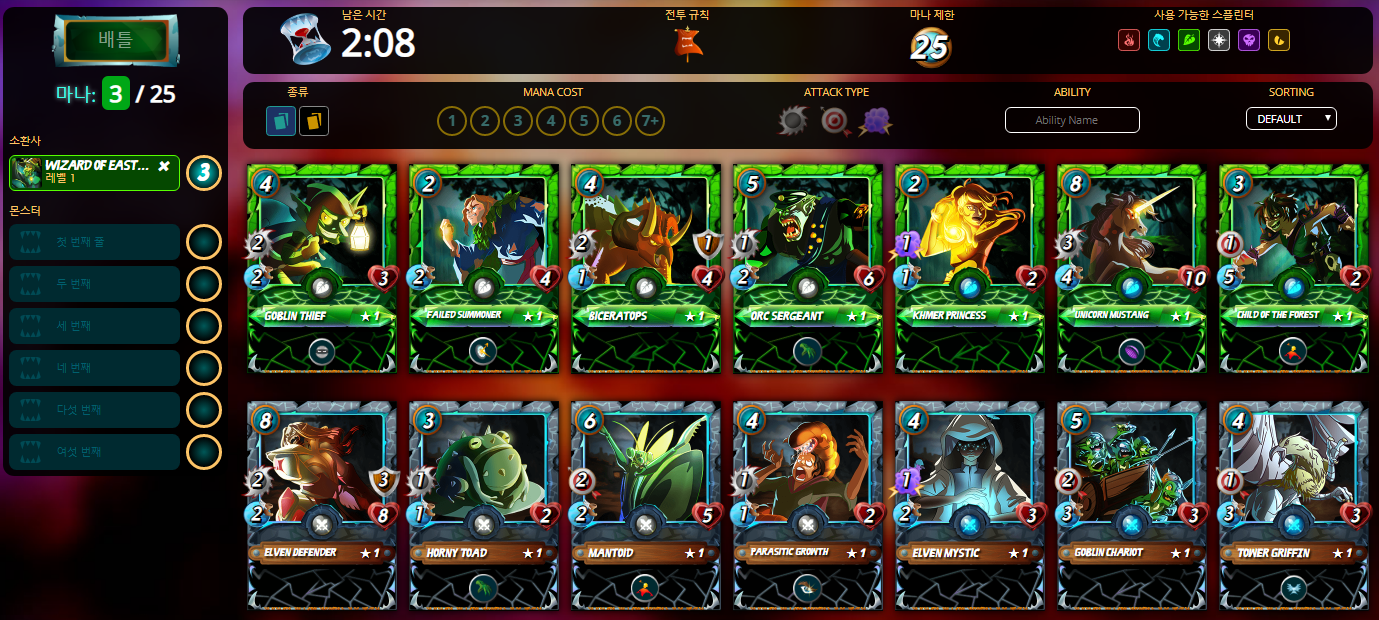 각 소환사들은 자신의 진영 카드와 중립 카드를 쓸수있다.