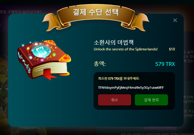 스타터팩을 구매하니 579 트론이 든다. 트론 $10 어치가 맞는지 모르겠지만, 아마 맞겠지...