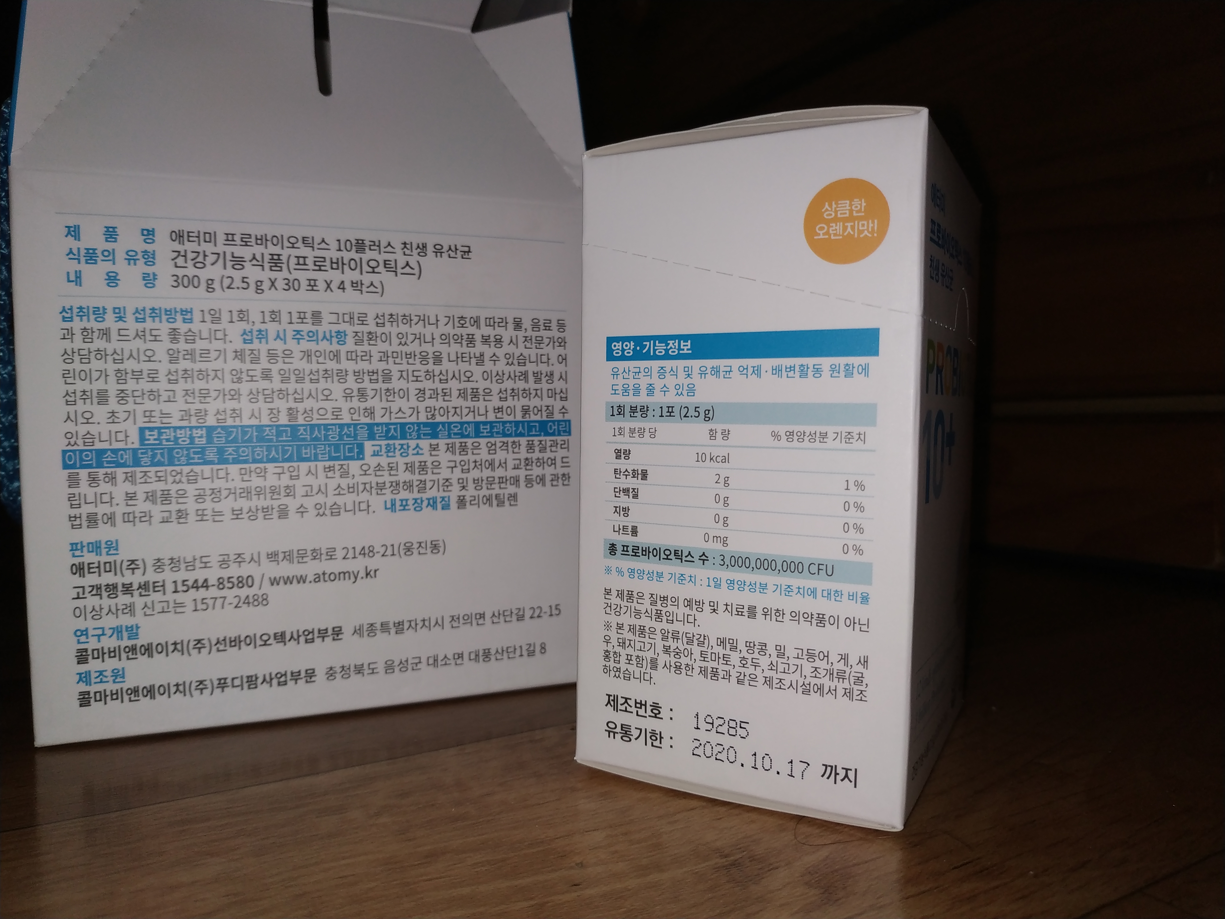 어제 점심때 즈음 주문한 애터미의 생 유산균 벌써 도착했읍니다.