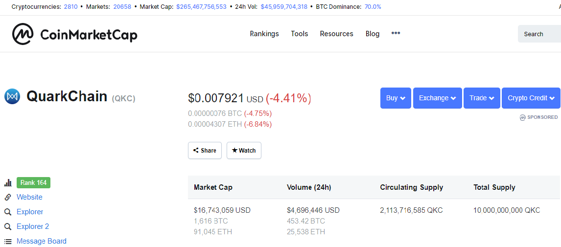 Quarkchain diptrex1443 (51)in #zzan • 7 years ago today QKC-BTC dipped to all time low and reach 74 sats (binance) it has a token swap in this month some exchanges do it and others like binance do it later . now price in kucoin (token swapped) is 73 and binance is 76 by : cryptonism #business-proposal #economy #crypto #bitcoin #newbie