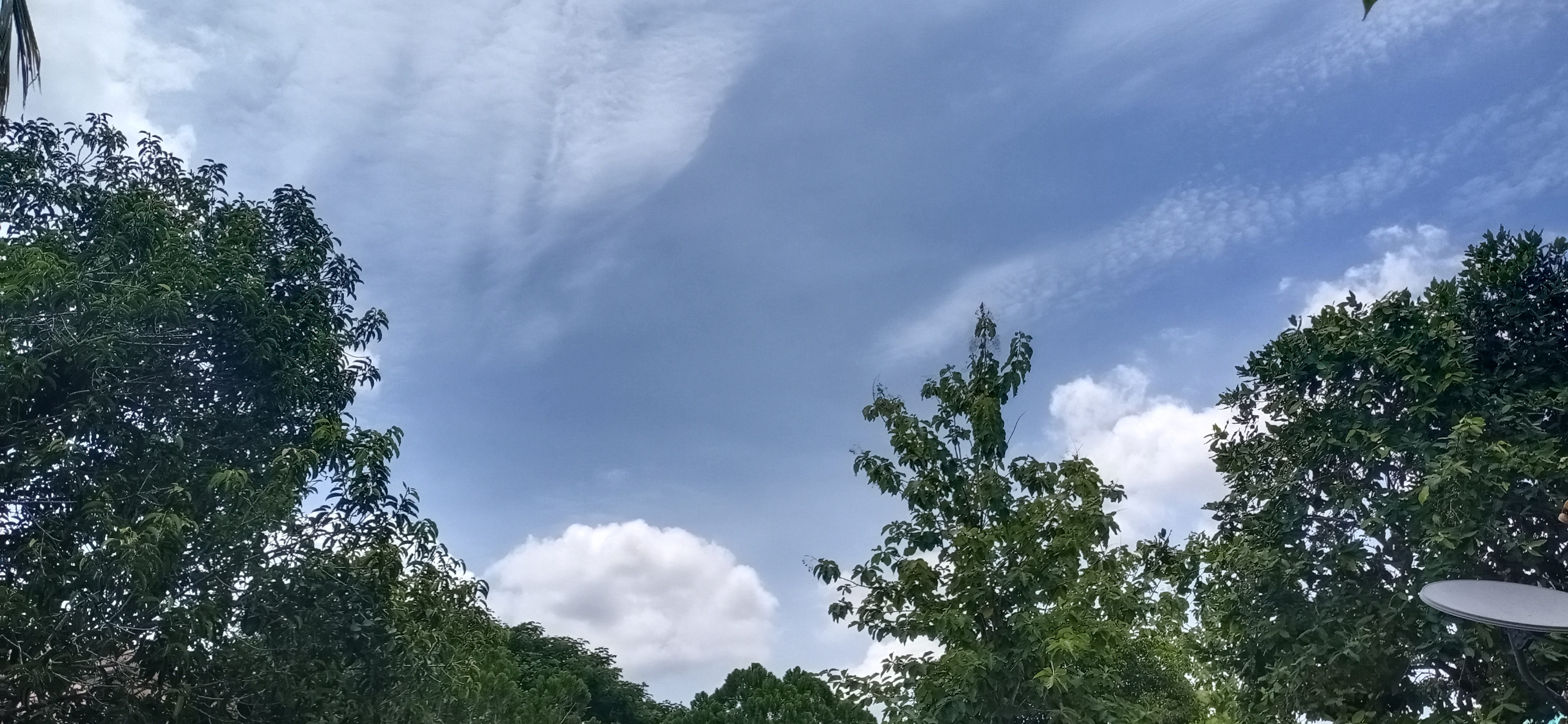 Seperti biasa dalam beberapa hari terakhir ini tampilan langit di bumi Aceh Utara Indonesia cerah dipagi hari namun mendung dan hujan disore hari. Tampilan gambar yang saya tampilkan hari ini merupakan gambar yang saya ambil tadi pagi sekitar pukul 11 pagi waktu Indonesia bagian barat. Suasana langit terlihat sangat cerah dengan suhu udara berkisar antara 29 hingga 31 derajat celcius. Namun pada saat postingan ini saya buat langit sudah mulai ditutup dengan awan gelap yang memungkinkan tidak lama lagi akan turun hujan.