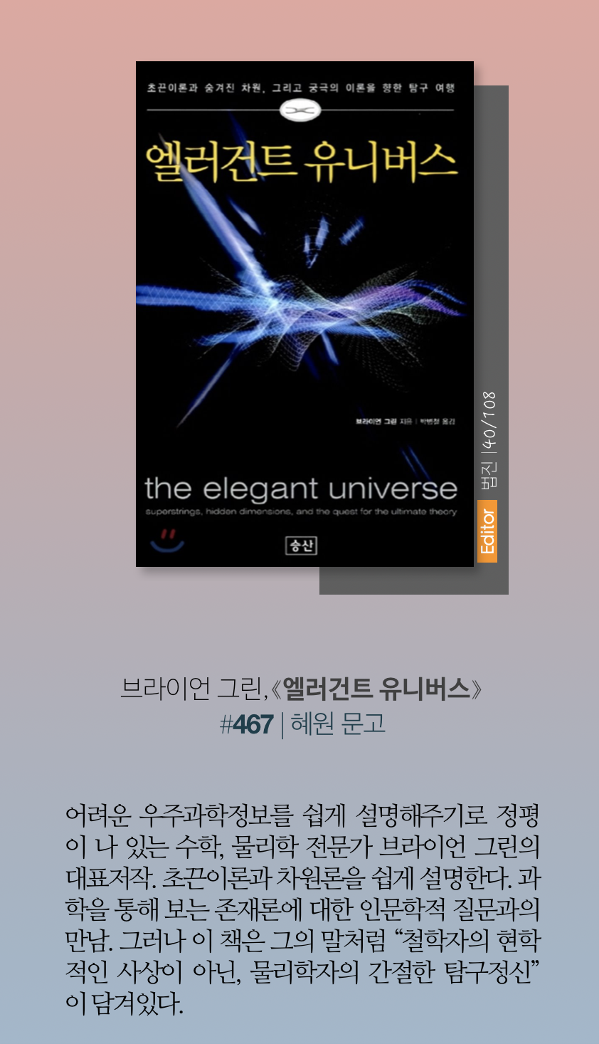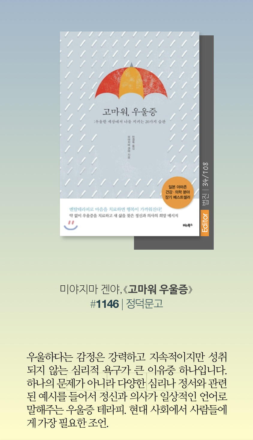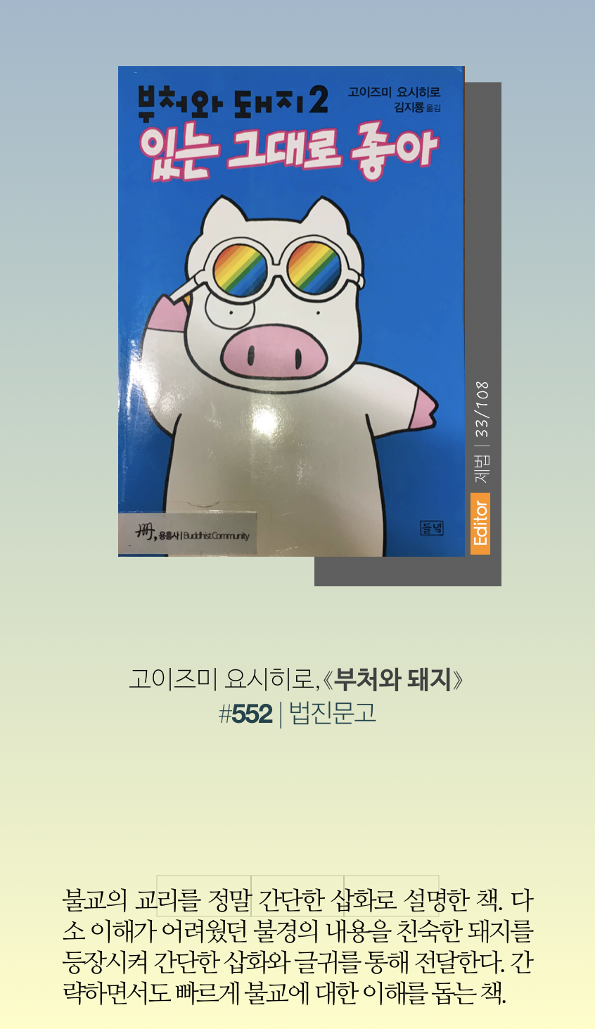 @ybc는 이전에 기획했다가 마무리 하지 못했던 108도서 리뷰를 재개하고 있습니다. 스마트폰 판형으로 바꾸고 며칠전부터 매일 커뮤니티 단톡에 연재를 시작했습니다. 스팀잇에는 매 10개마다 포스팅 하는 방식으로 약 10여차례에 걸쳐서 정리해두려고 합니다.