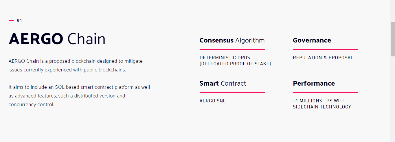 💡 AERGO CHAIN - verejný internet na blokovej reťaze, bude novým protokolom pozostávajúcim z globálnej verejnej decentralizácie siete firemných reťazcov, ktorú vykonávajú poskytovatelia hubov. Bude obsahovať AERGOSQL, nový mechanizmus na jednoduché vytváranie pokročilých inteligentných zmlúv. Tým sa vytvoria inovatívne obchodné produkty a služby. Reťazec AERGO možno považovať nielen za open-source bloku, ale aj za celý operačný systém.