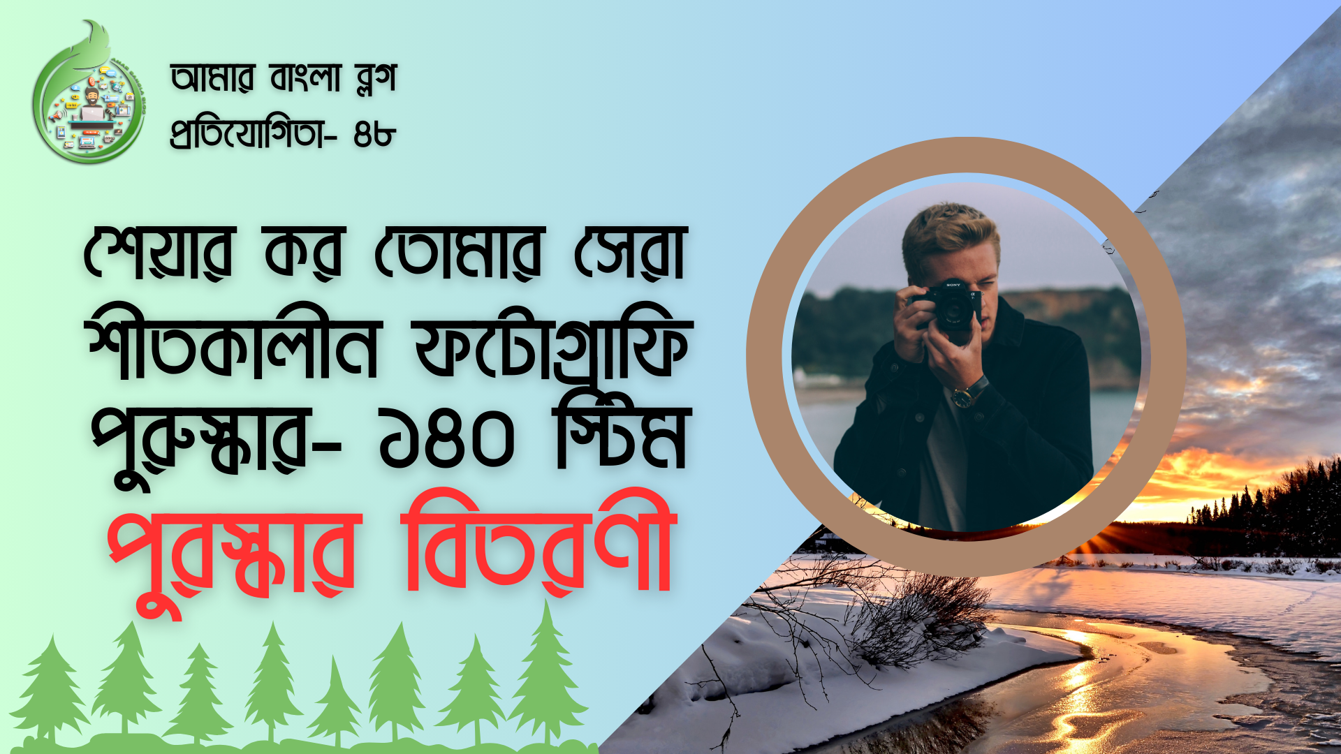 প্রতিযোগিতার বিষয় ছিল "আমার বাংলা ব্লগ" প্রতিযোগিতা - ৪৮ || শেয়ার কর তোমার সেরা, শীতকালীন ফটোগ্রাফি। শীতের এই শুরুতে খুবই চমৎকার একটি বিষয় নিয়ে এই প্রতিযোগিতার আয়োজনটি করা কয়েছে। প্রতিটি ইউজার অনেক সময় ও পরিশ্রম দিয়ে তাদের ক্রিয়েটিভিটির মাধ্যমে আমাদের সামনে শীতকালীন অনেক সুন্দর সুন্দর ফটোগ্রাফি তুলে ধরার চেষ্টা করেছেন। এবারের এই প্রতিযোগিতায় অংশগ্রহণ করেছেন ২৯ জন। যদিও আরো অনেকেই এই প্রতিযোগিতায় অংশগ্রহণ করেছিলেন অংশগ্রহণের সময় শেষ হয়ে যাওয়ার পর। যার কারণে তাদের পোস্ট গুলো গ্রহণ করা হয়নি।