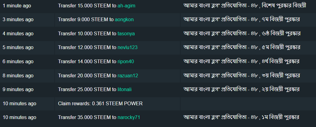 | 7th | @aongkon | https://steemit.com/hive-129948/@aongkon/4f44958a3fd11 | 09 steem |
