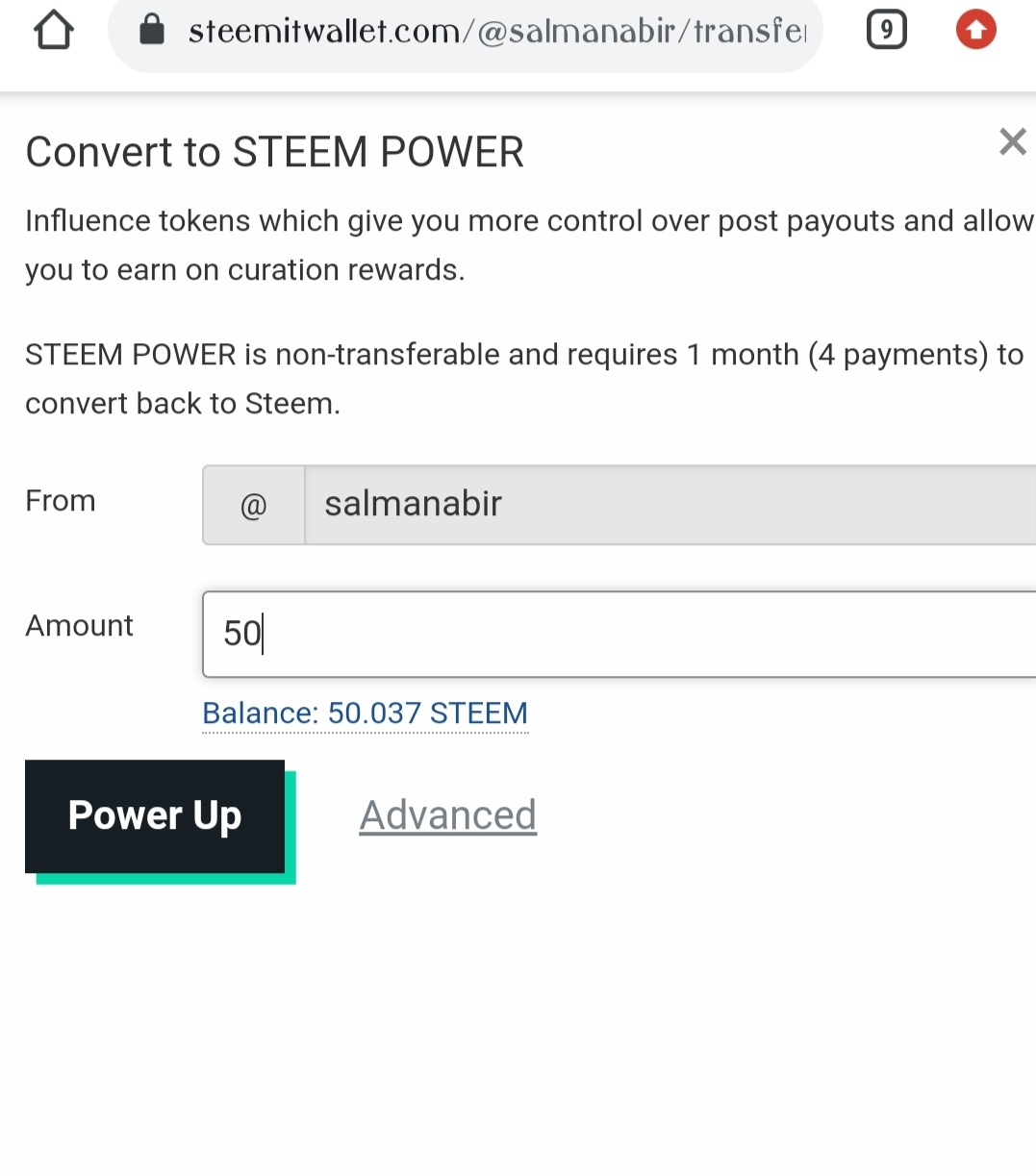 যে পরিমান পাওয়ার আপ করব তা এমাউন্টে বসিয়ে দিলাম আমি ৫০ স্টিম পাওয়ার আপ করব তাই ৫০ দিলাম