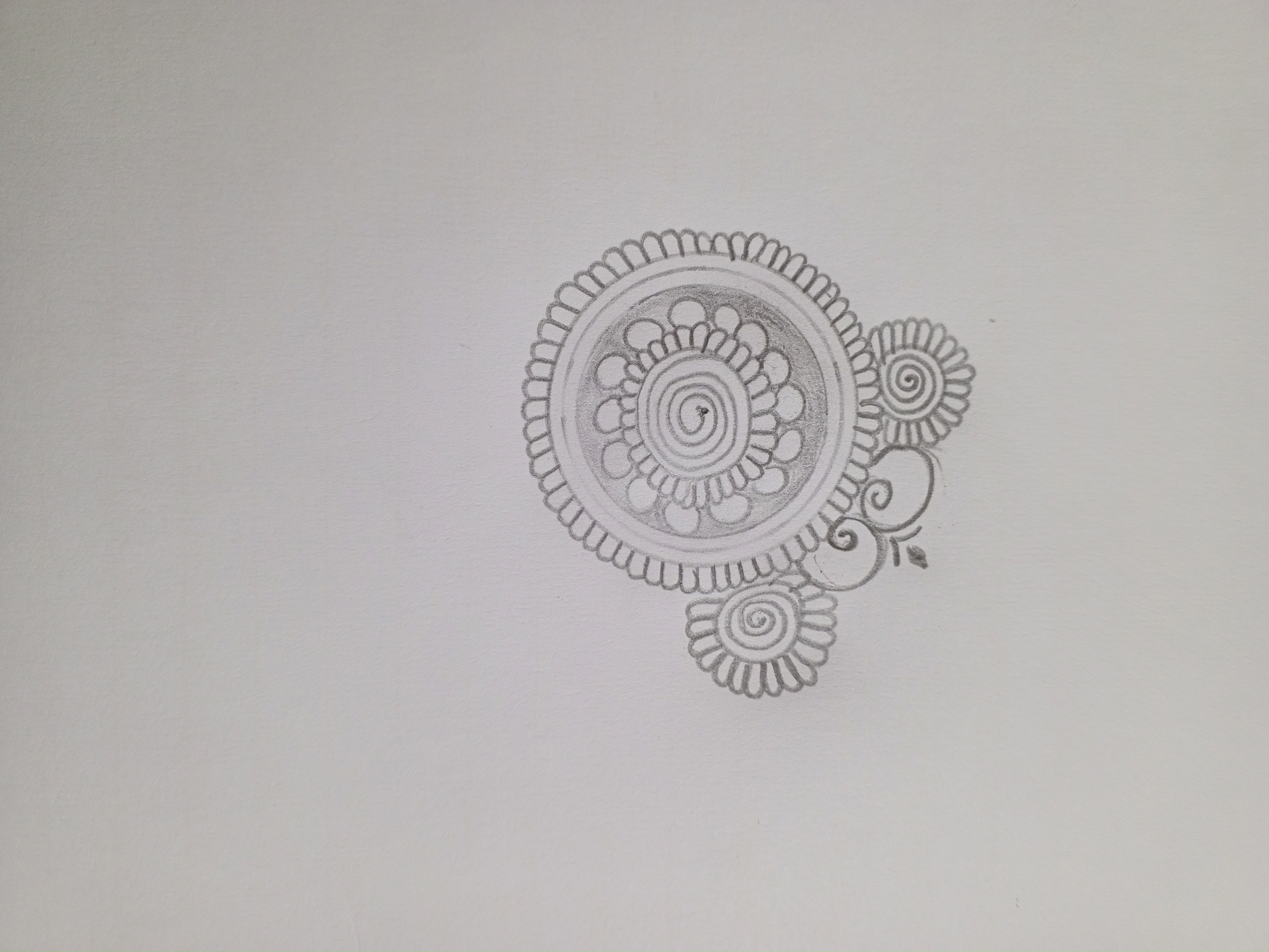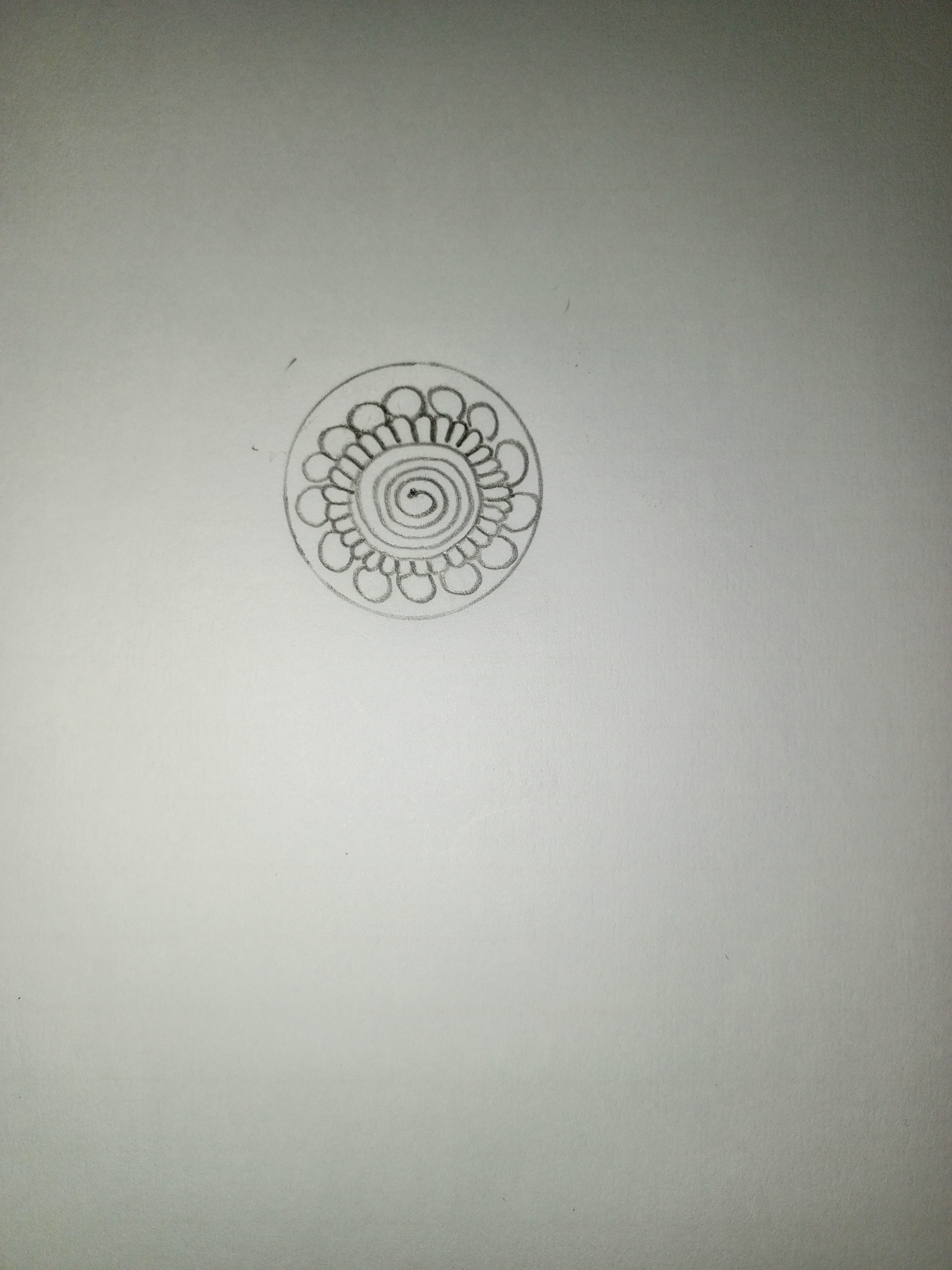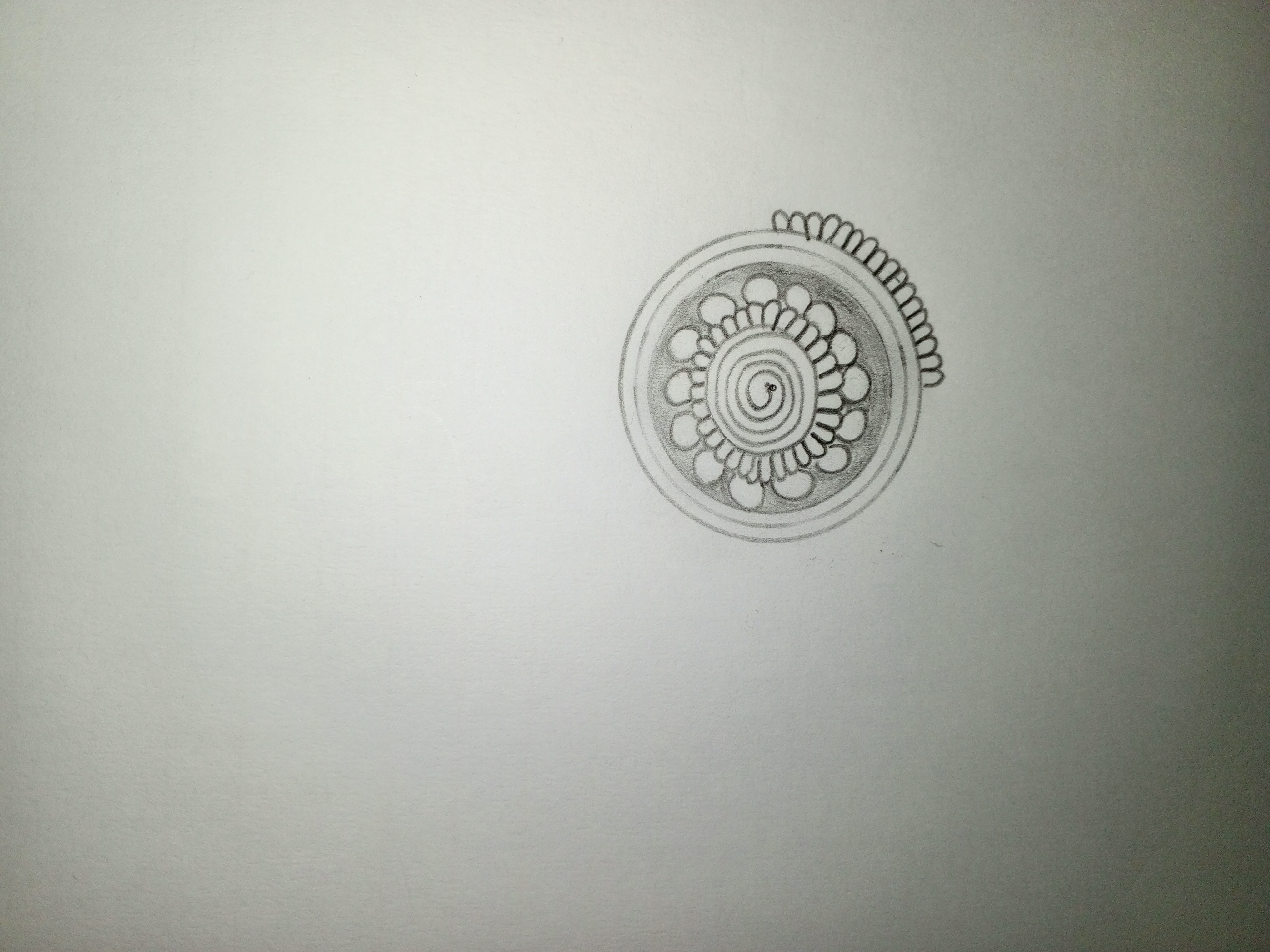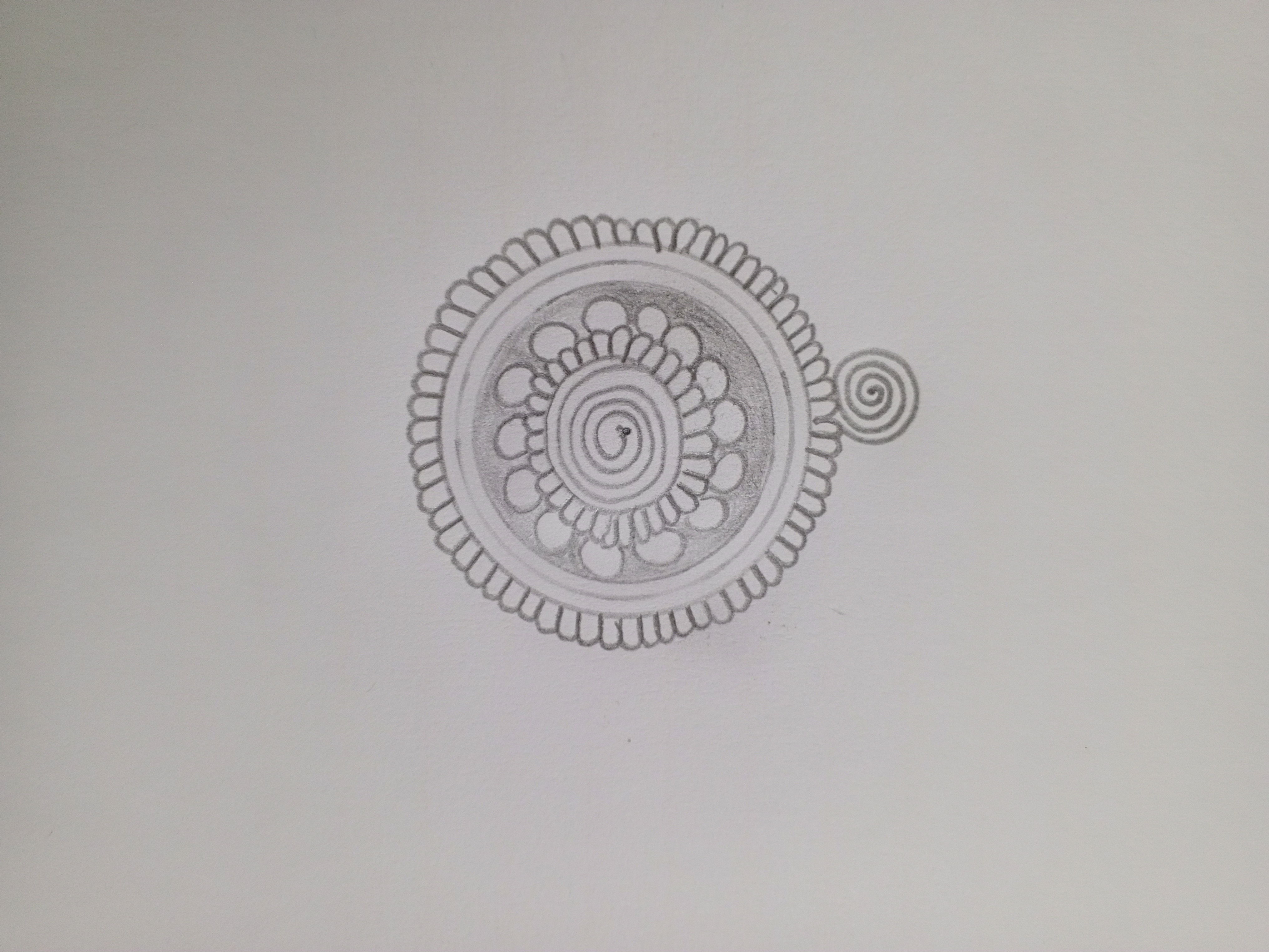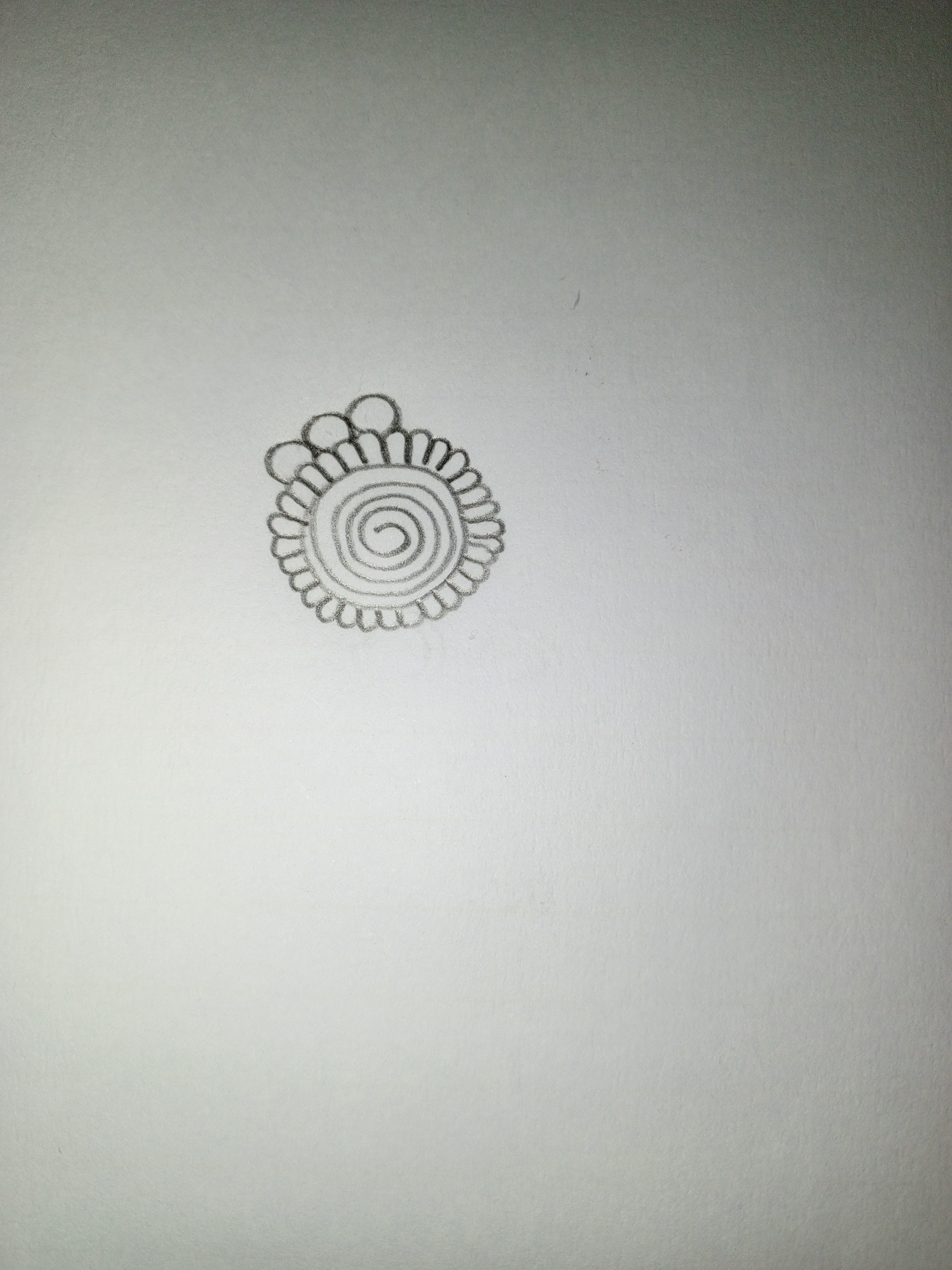 কয়েল আকৃতির ডিজাইনের উপর ইউয়ের আকার করে ফুলের পাপড়ি এঁকে নিয়েছি।