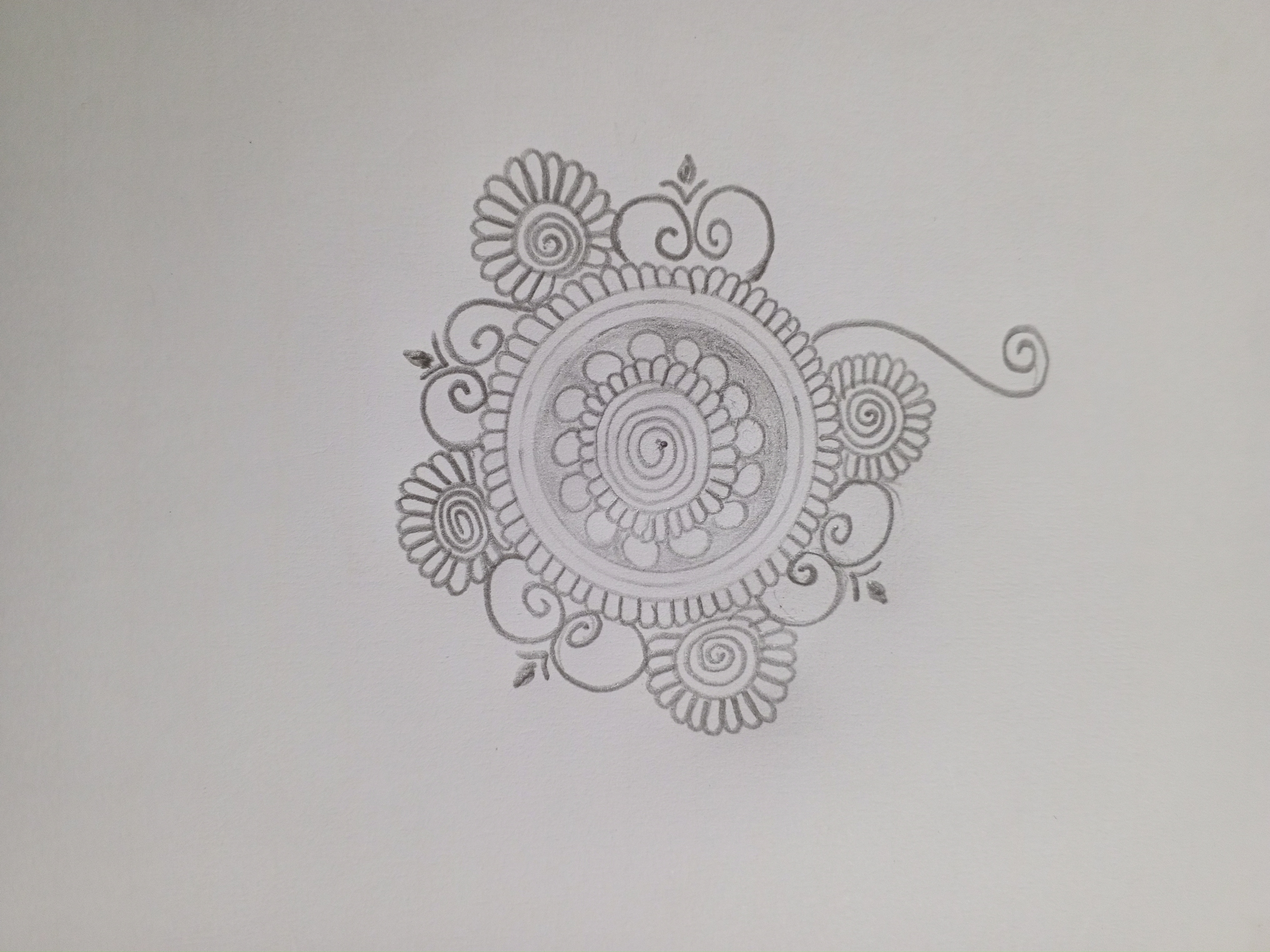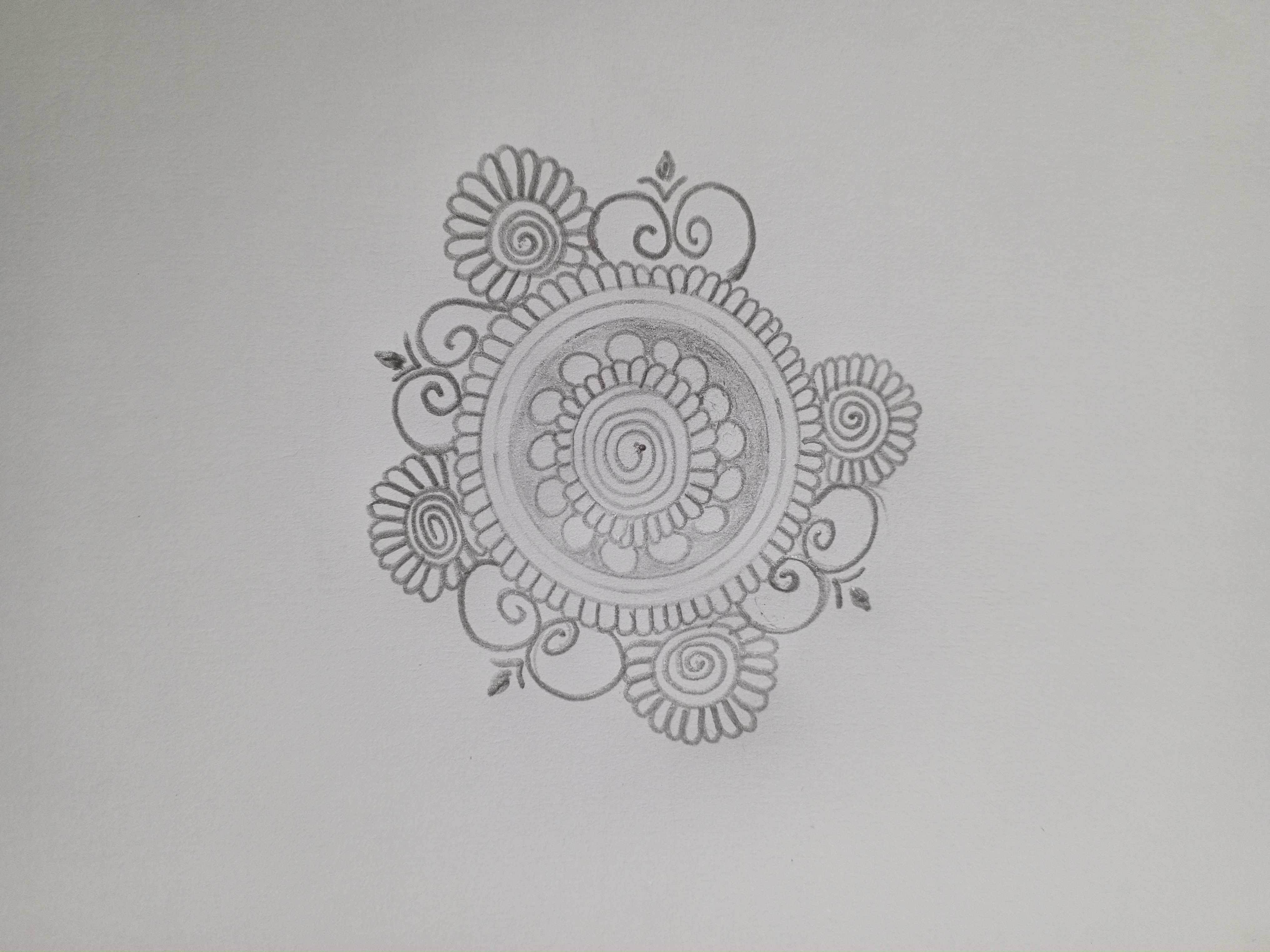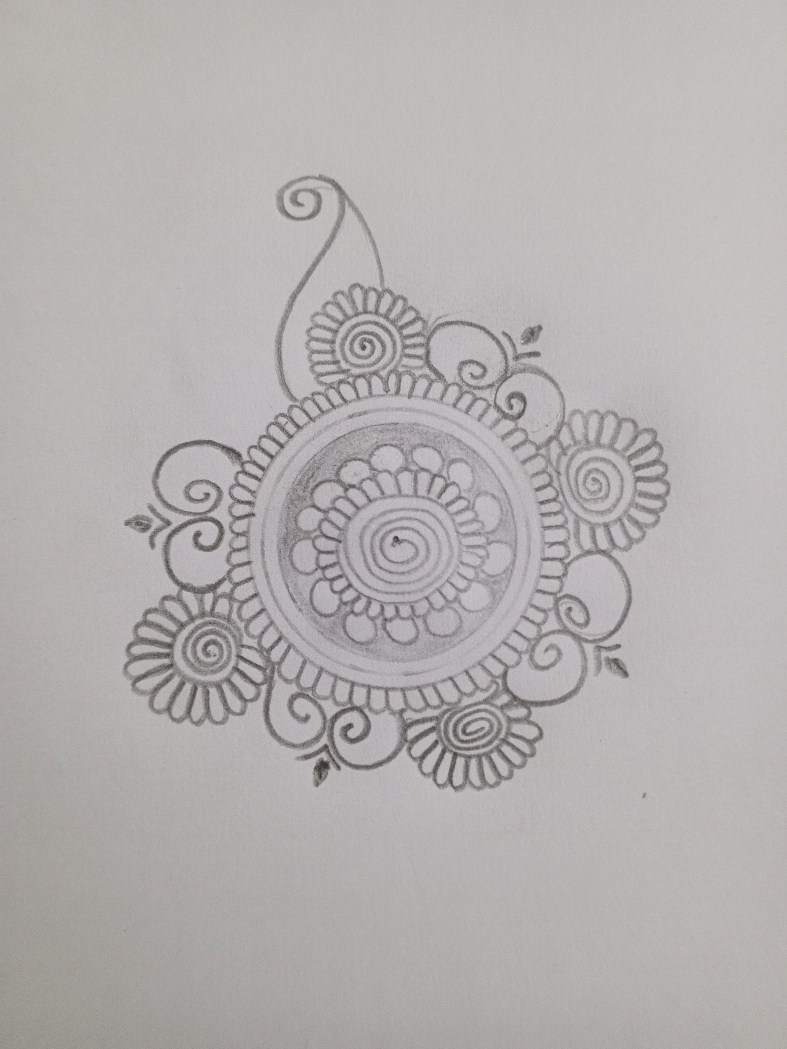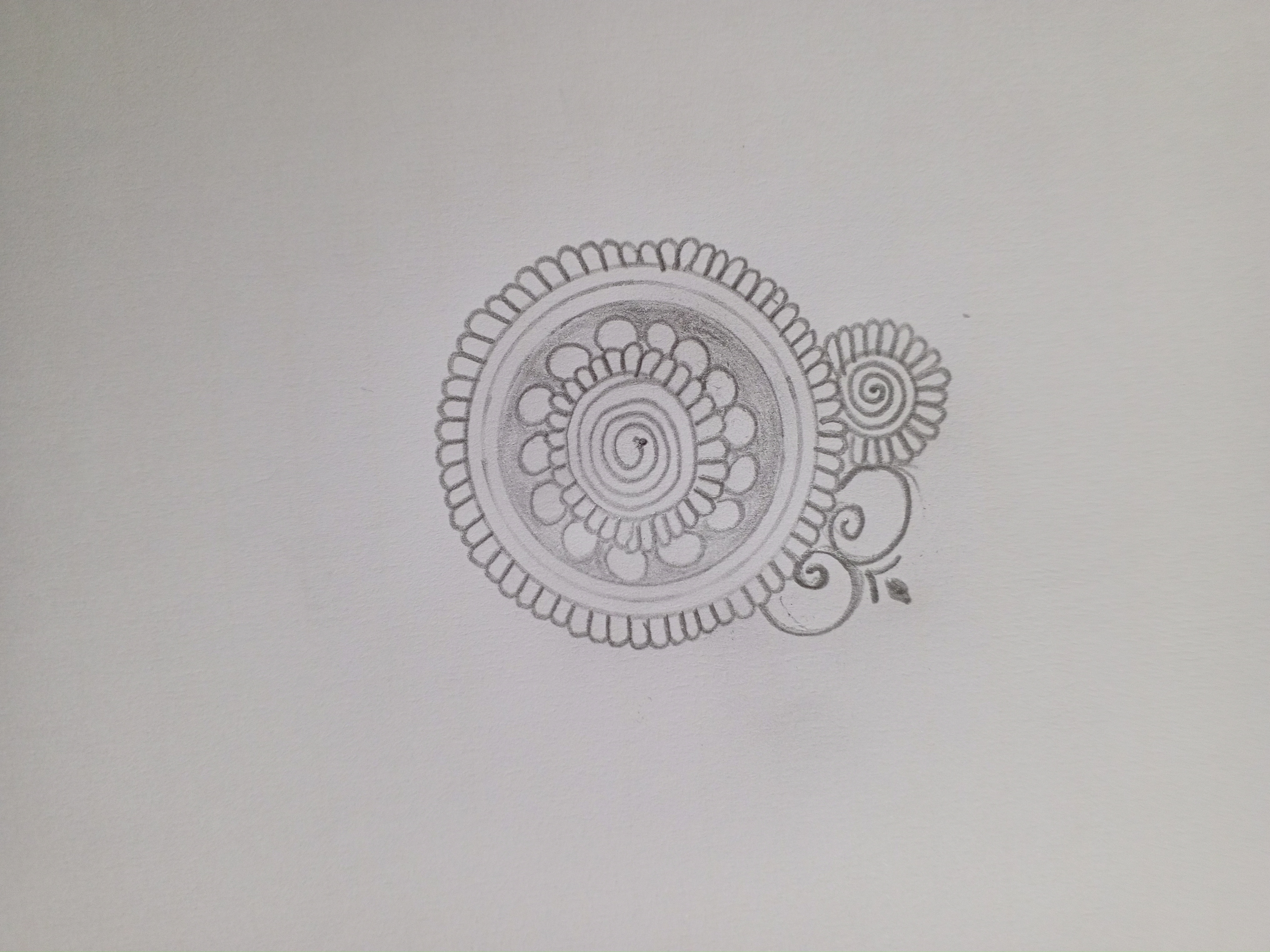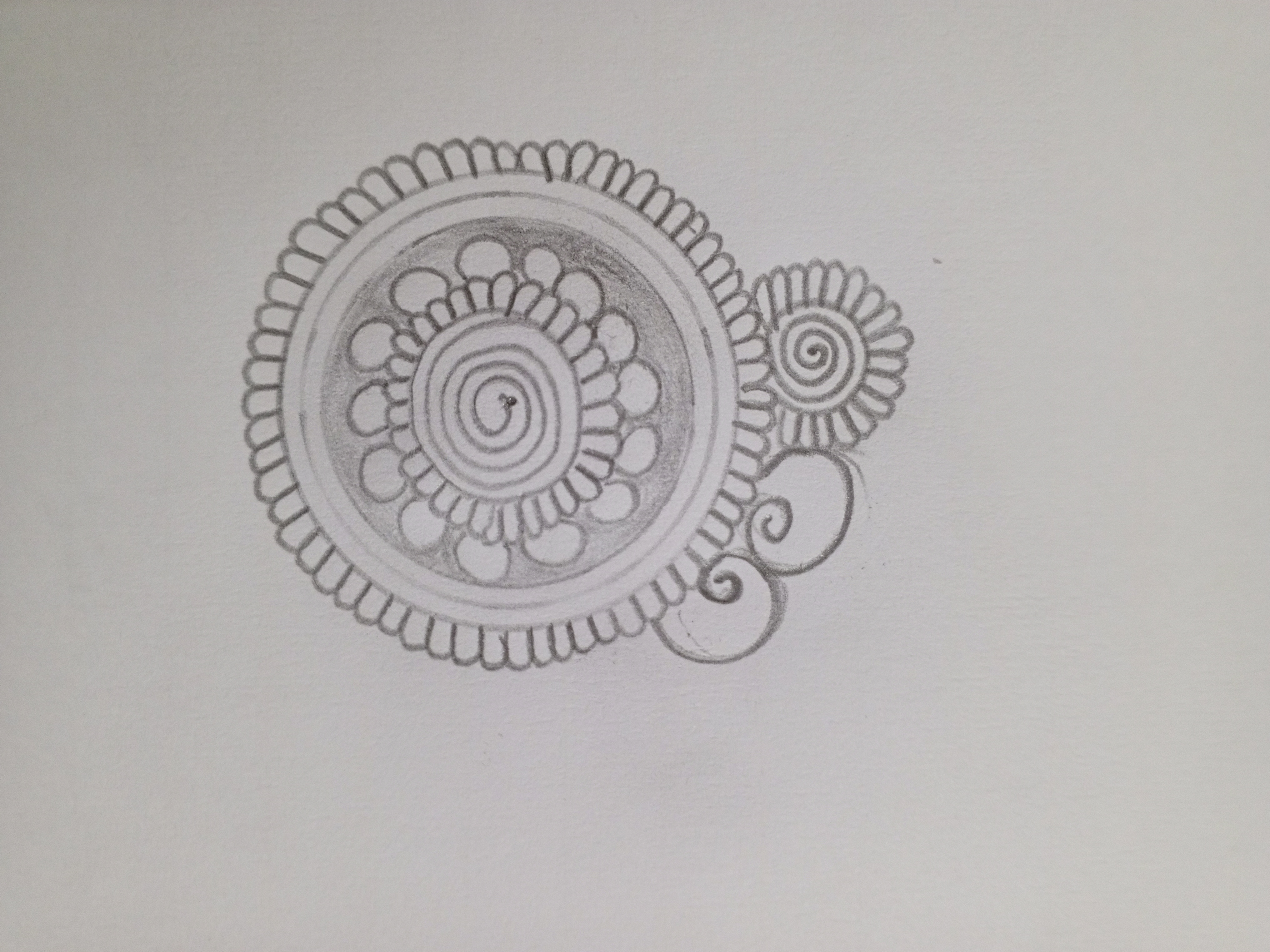কয়েল আকৃতির ডিজাইনের উপর ইউয়ের আকার করে ফুলের পাপড়ি এঁকে নিয়েছি।