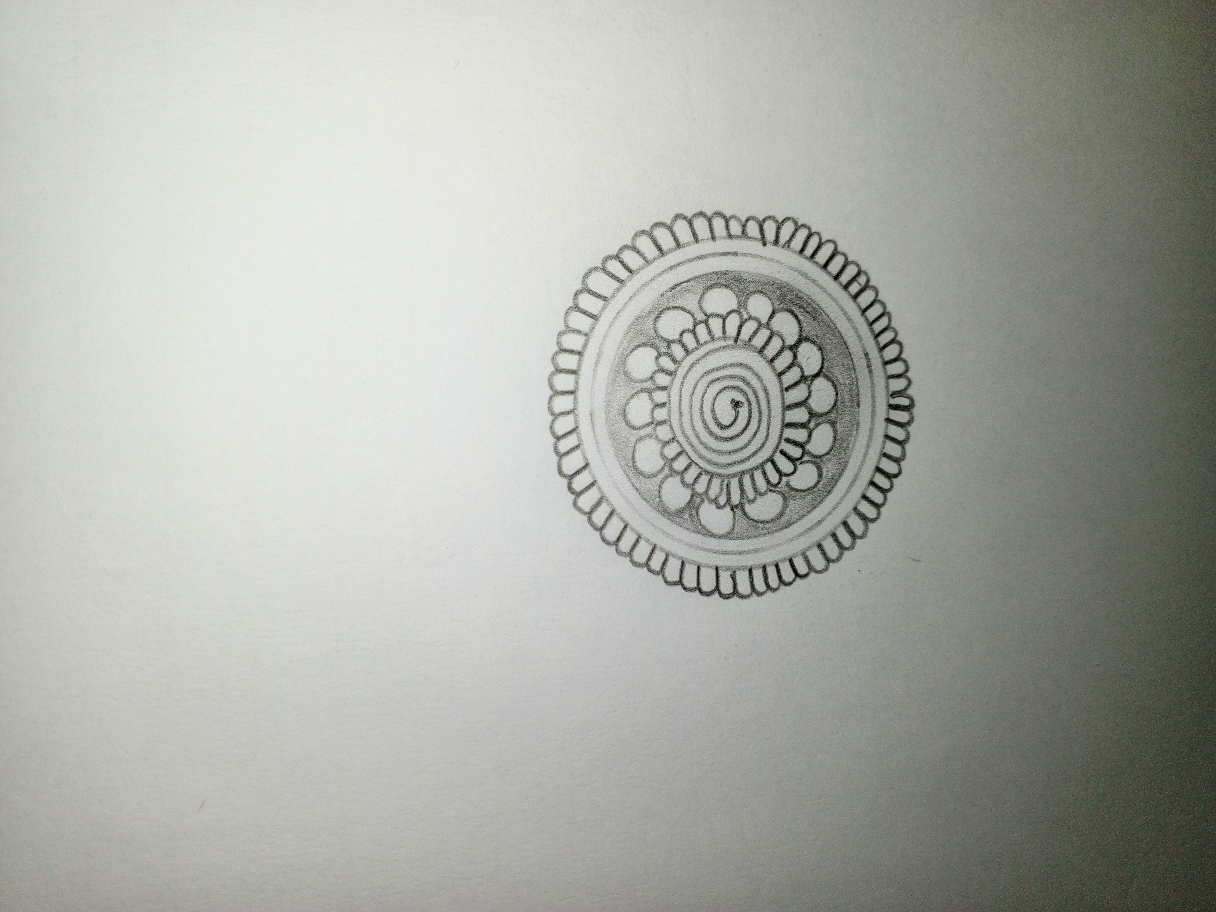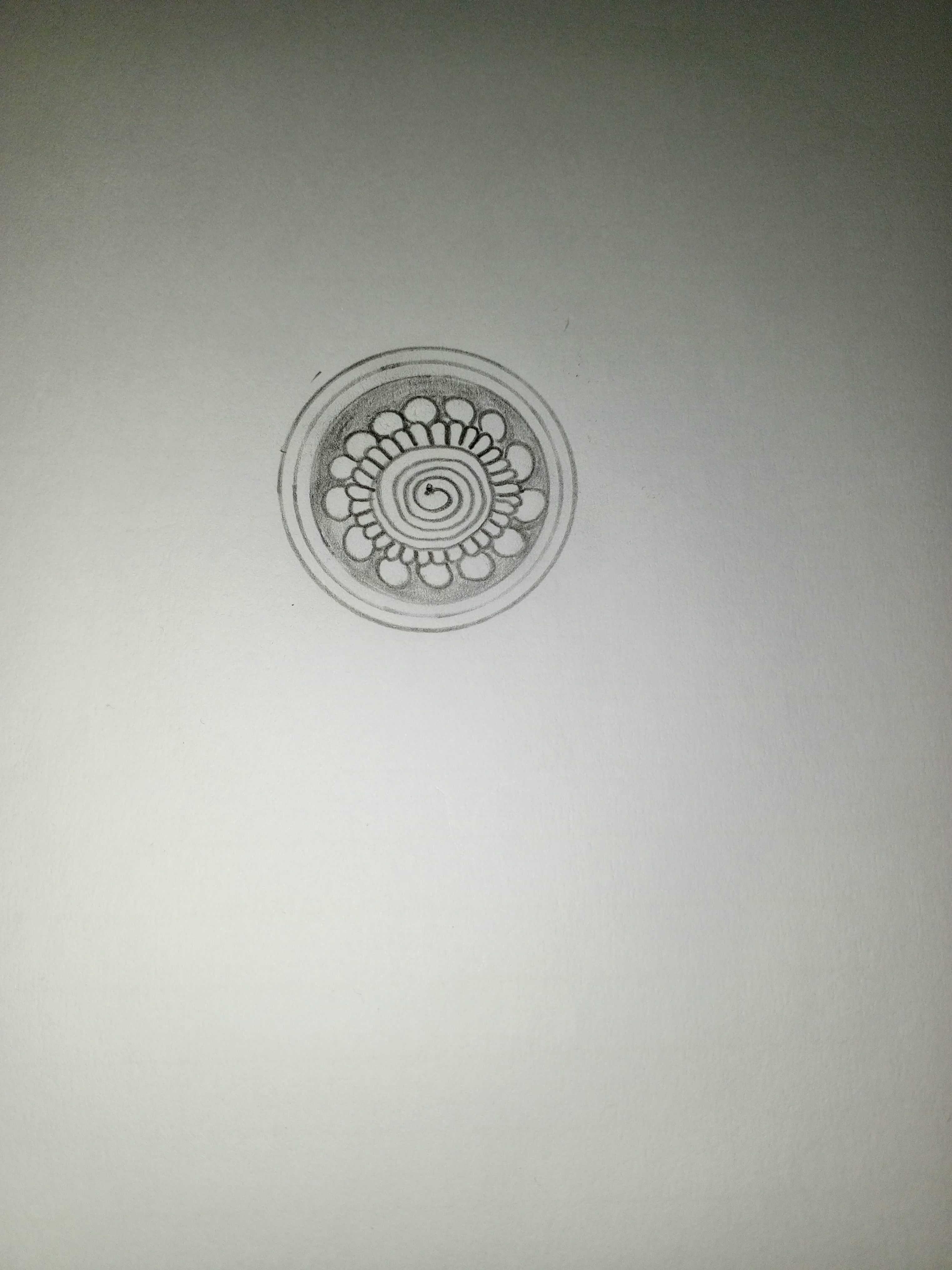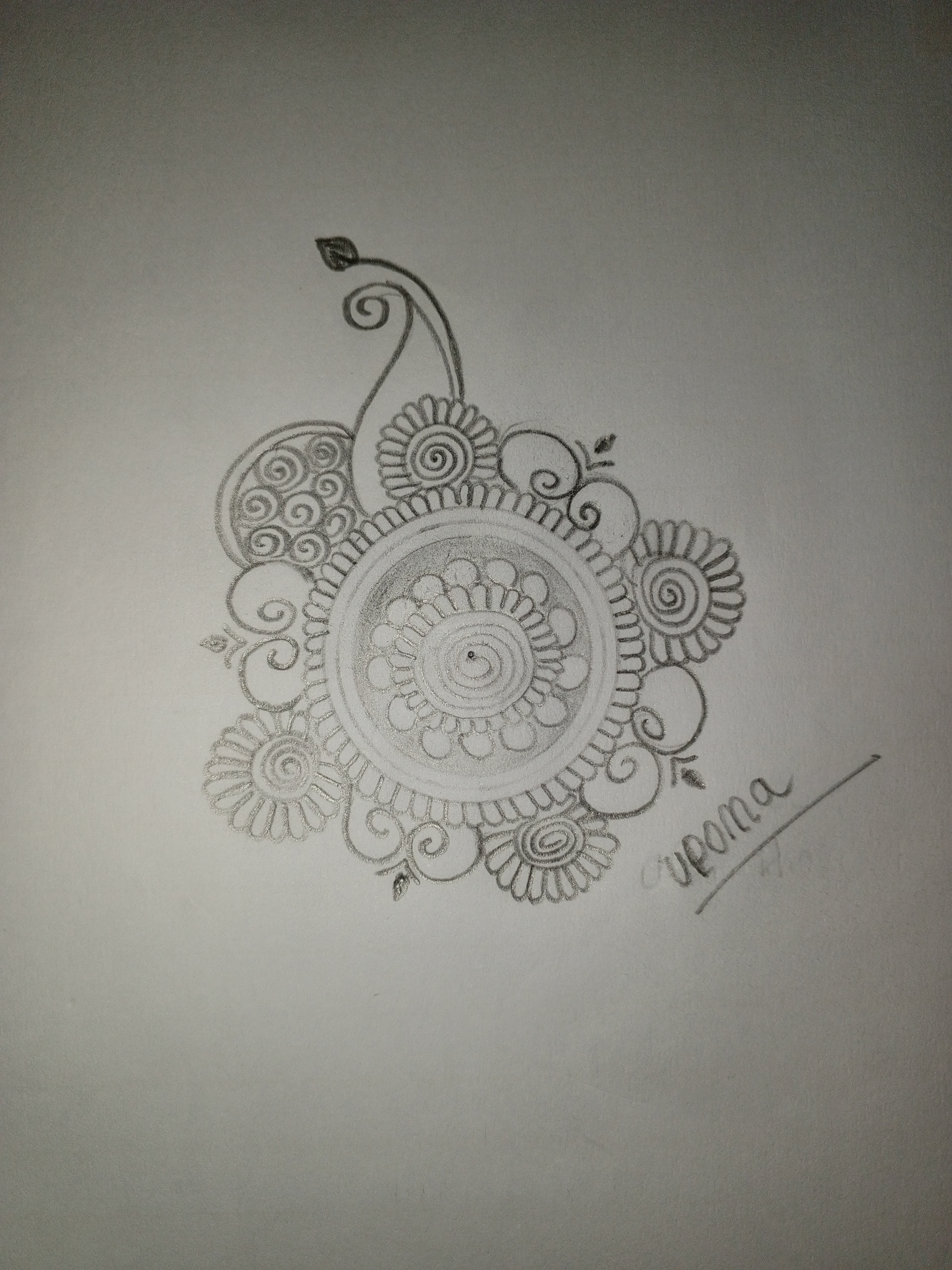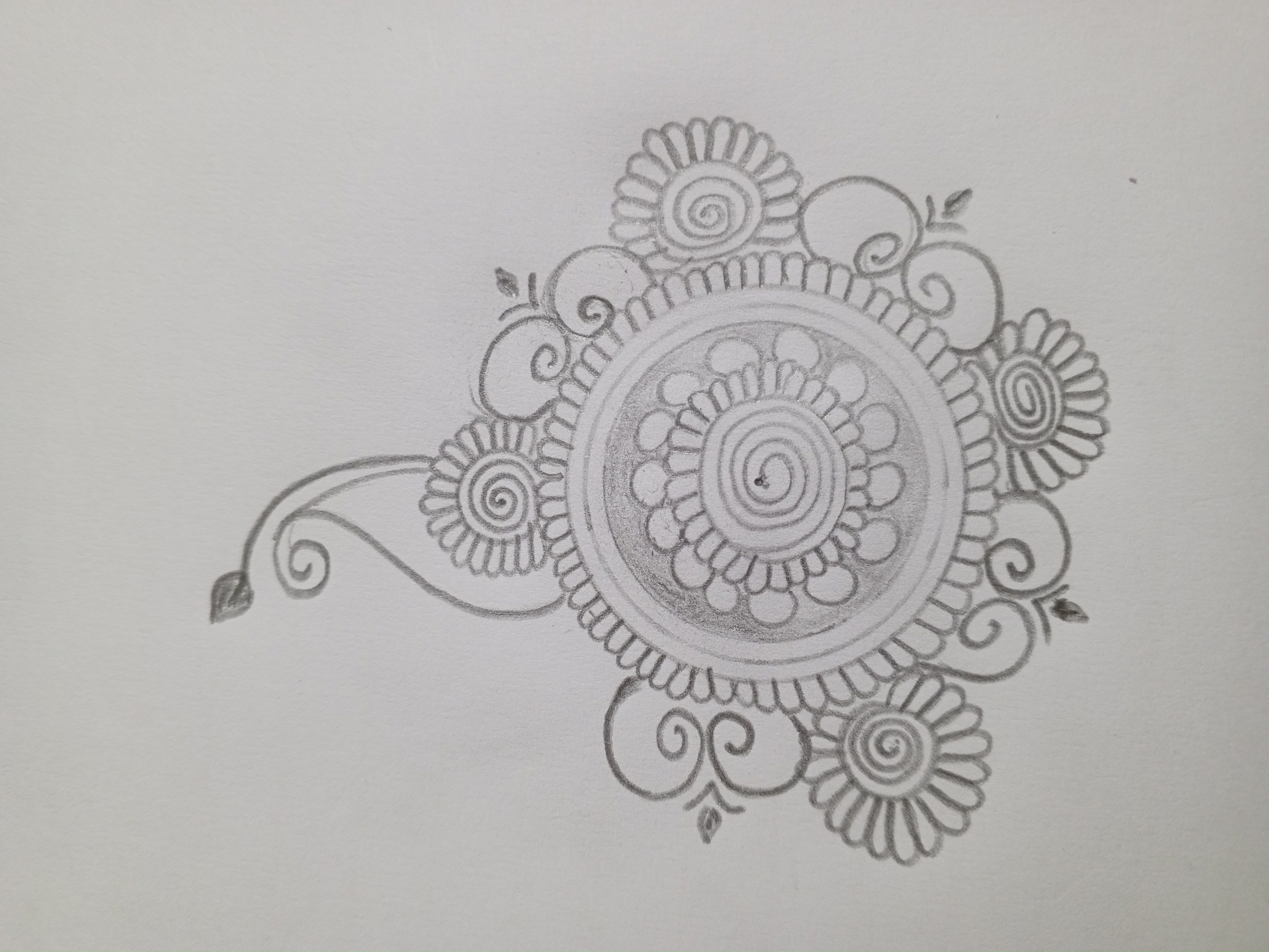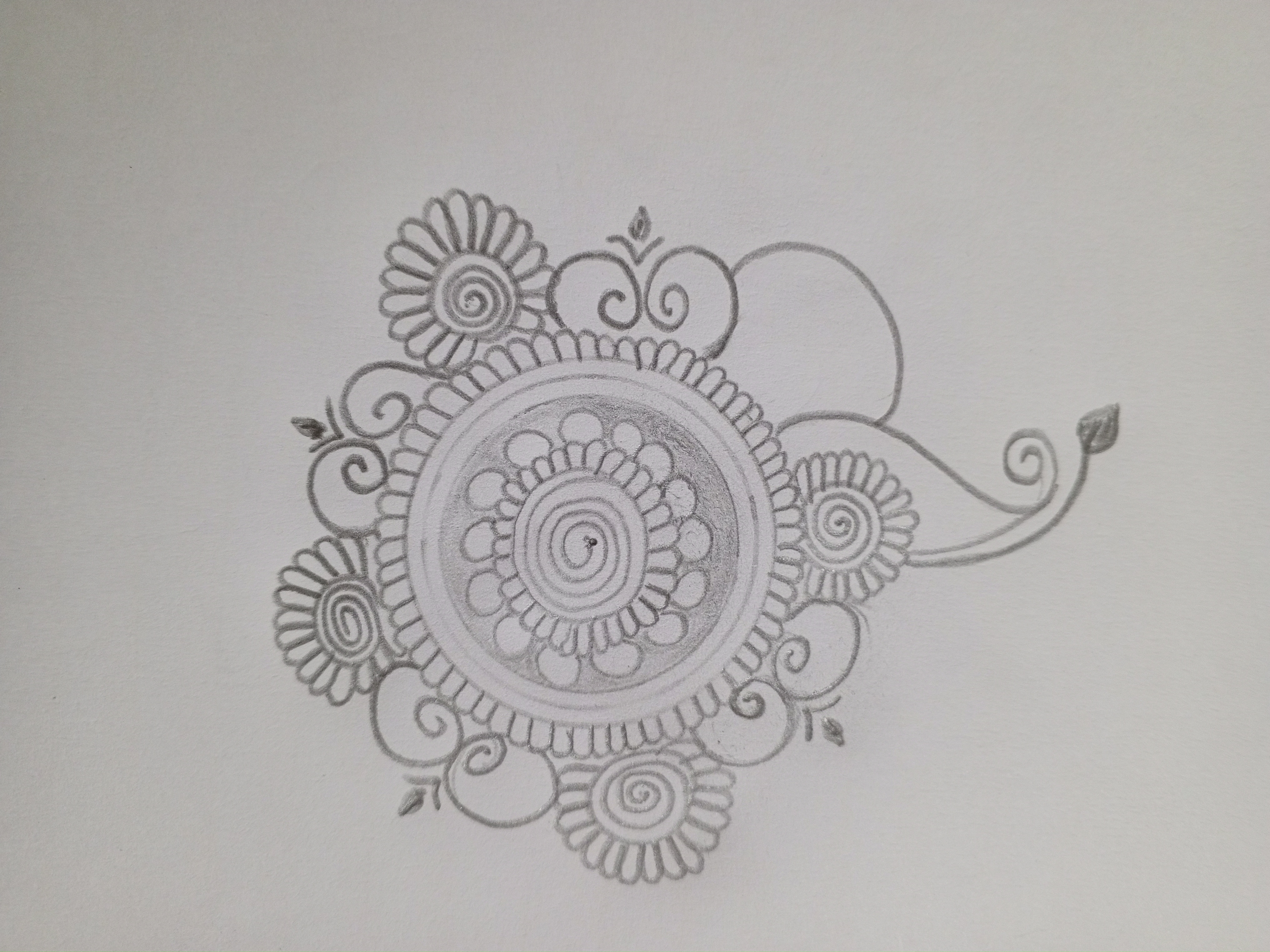 কয়েল আকৃতির ডিজাইনের উপর ইউয়ের আকার করে ফুলের পাপড়ি এঁকে নিয়েছি।