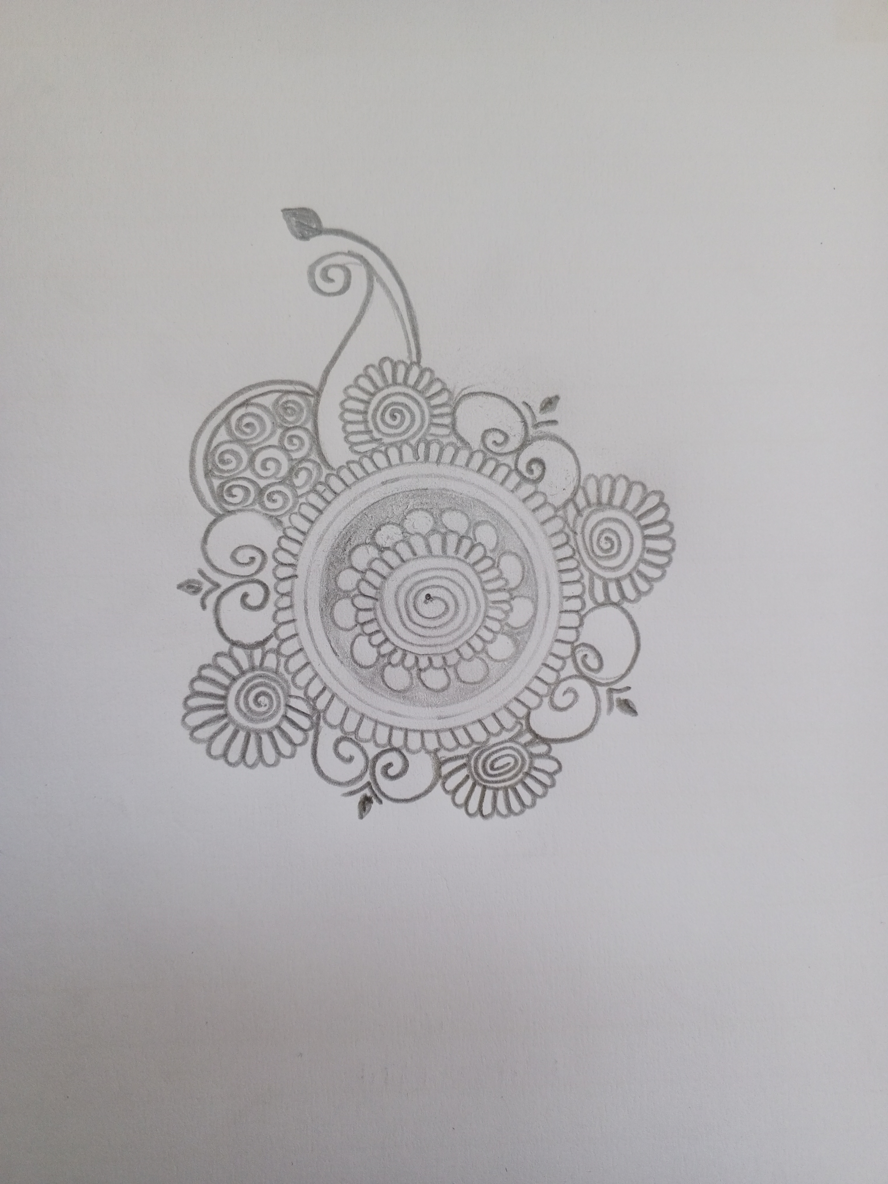 এভাবে ফুল ও এক এর ডিজাইন করে চারপাশে এঁকে নিয়েছি।